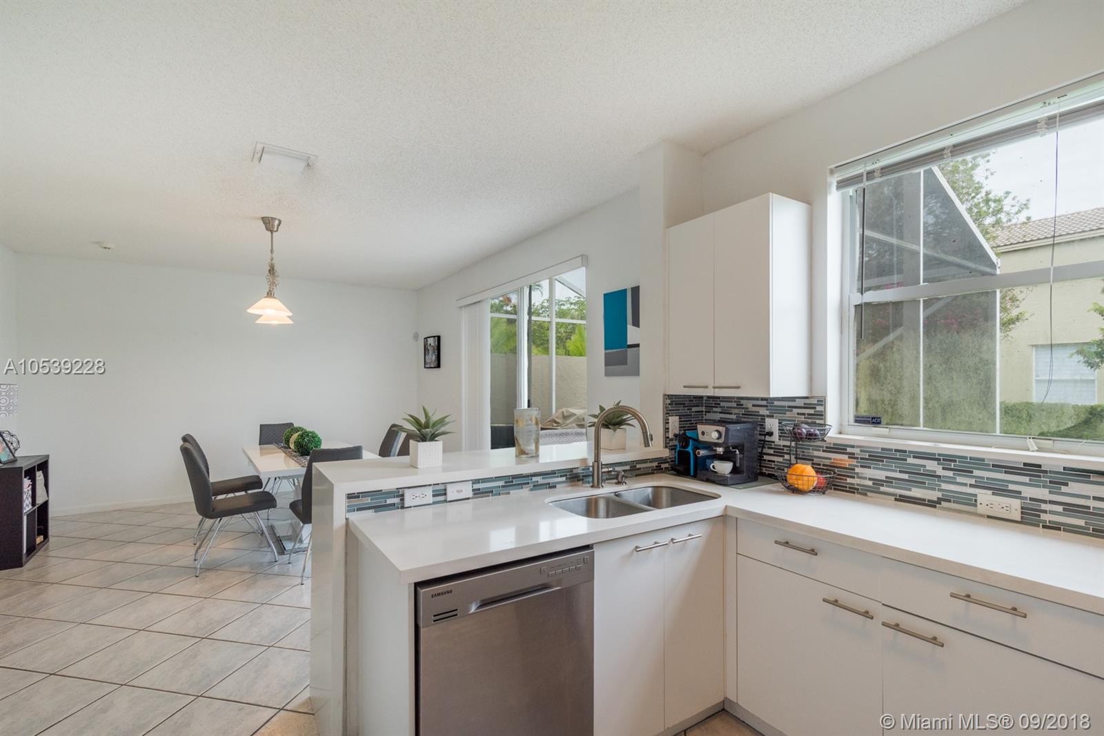 Impecable 3 bedroom 2.5 baths corner unit townhouse. Featuring a very nice upgraded kitchen with quartz countertops, stainless steel appliances and a new master bathroom. Also has tile floors downstairs and laminated wood floors upstairs. new dryer machine. Towngate is centrally located off of I-75 and Pines Boulevard, with the convenience of ample nearby shopping, business centers, houses of worship, restaurants and medical facilities. Once inside the community you will appreciate the beautiful terrain, with wide sidewalks for casual strolls, lovely lakes and a recreational area with a community pool, tennis and children's playground.
