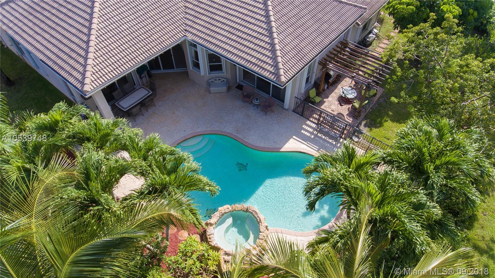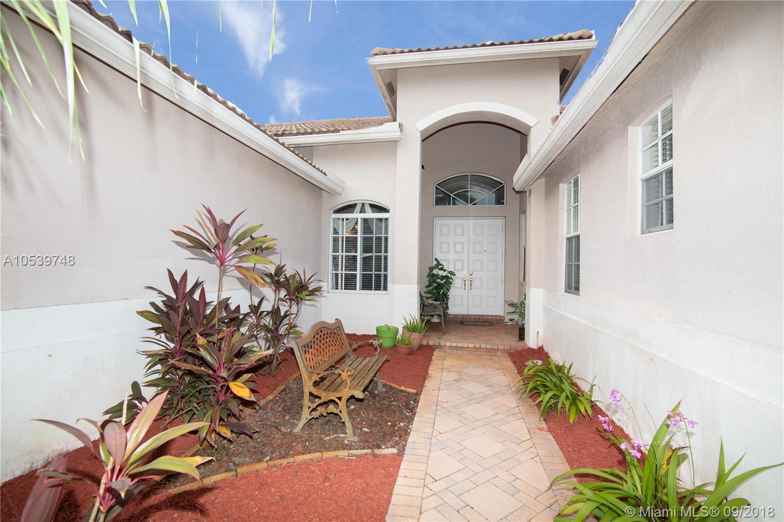 Beautiful One Story home located in the desirable gated community of Sunset Lakes/Miramar West, This elegant home features: 4 bedrooms, 3 baths, Den, with Bonus room offers an open floor plan, Kitchen with 42" cabinets, granite countertops, large Pantry, Butler Pantry with cabinets/ Wet Bar and Wine Cooler, formal living and dining room, crown moldings and high hat lights throughout, great Master Suite with a Sitting Area, walk in closet with large Master Bath, Family Room and Bonus Room with a nice view to the private and delightful landscaped, fenced heated pool/Jacuzzi, accordion shutters, Security Cameras and alarm. Circular Paved Driveway, only 40 homes at Las Brisas/Sunset Lakes. Featuring a Resort Style Clubhouse, Fitness center, 8 Tennis courts, Basketball, Pool, Kids Center.