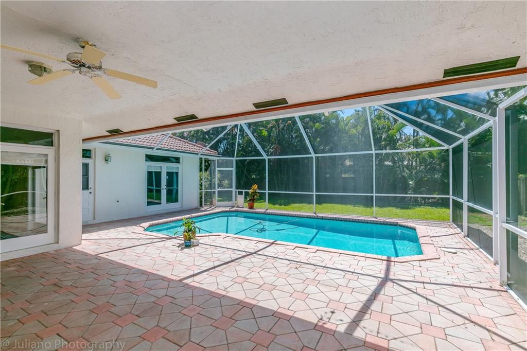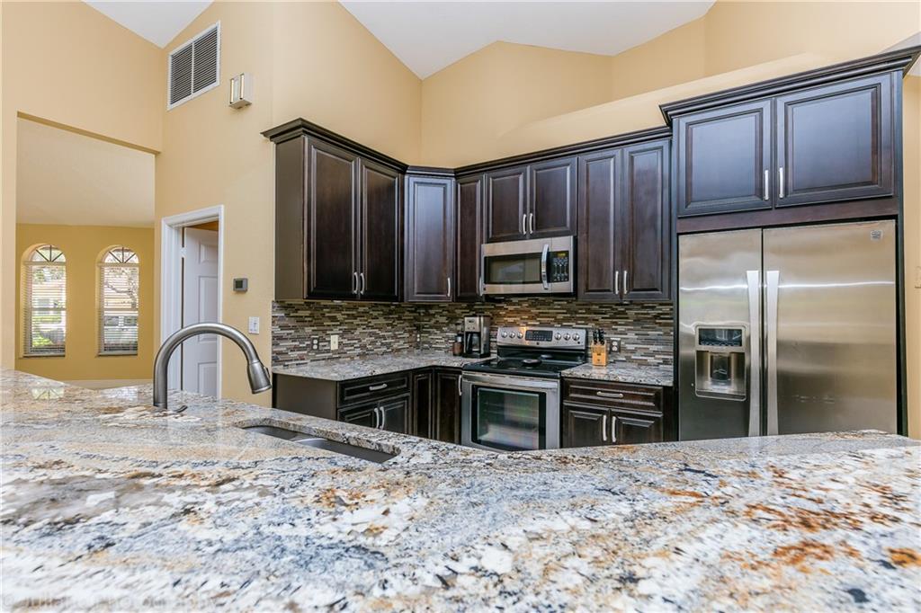 THIS ONE IS READY TO MOVE IN! SPACIOUS 4BR/2.5BA HOME WITH POOL & BEAUTIFUL KITCHEN! Upgraded kitchen w/wood cabinets, granite counters, back splash, Kenmore stainless steel appliances, & breakfast area. Bright and light w/open floor plan. Separate living, formal dining and family rooms. Half bath remodeled with vanity, granite counters and framed mirror. Other features include tile throughout living areas, vaulted ceilings, french doors, split bedroom plan, 5 ceiling fans, wainscoating in dining room, laundry room w/storage & 2nd full bath is cabana bath. Master bedroom overlooking the pool area with his and hers walk in closets. Master bath has dual sinks, bidet, separate shower, and roman tub. Screened in pool w/paver patio & fenced in private backyard just perfect for entertaining.
