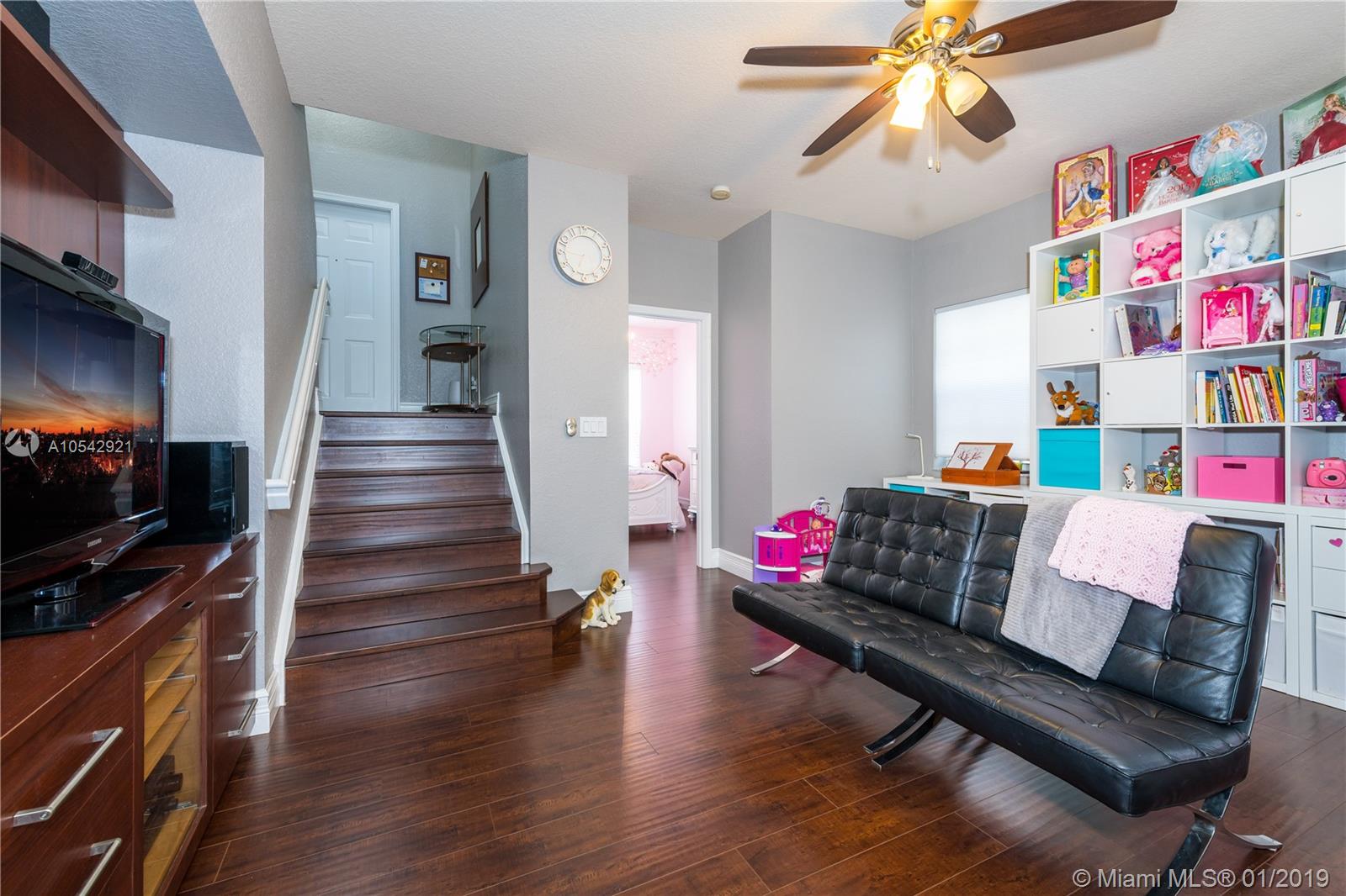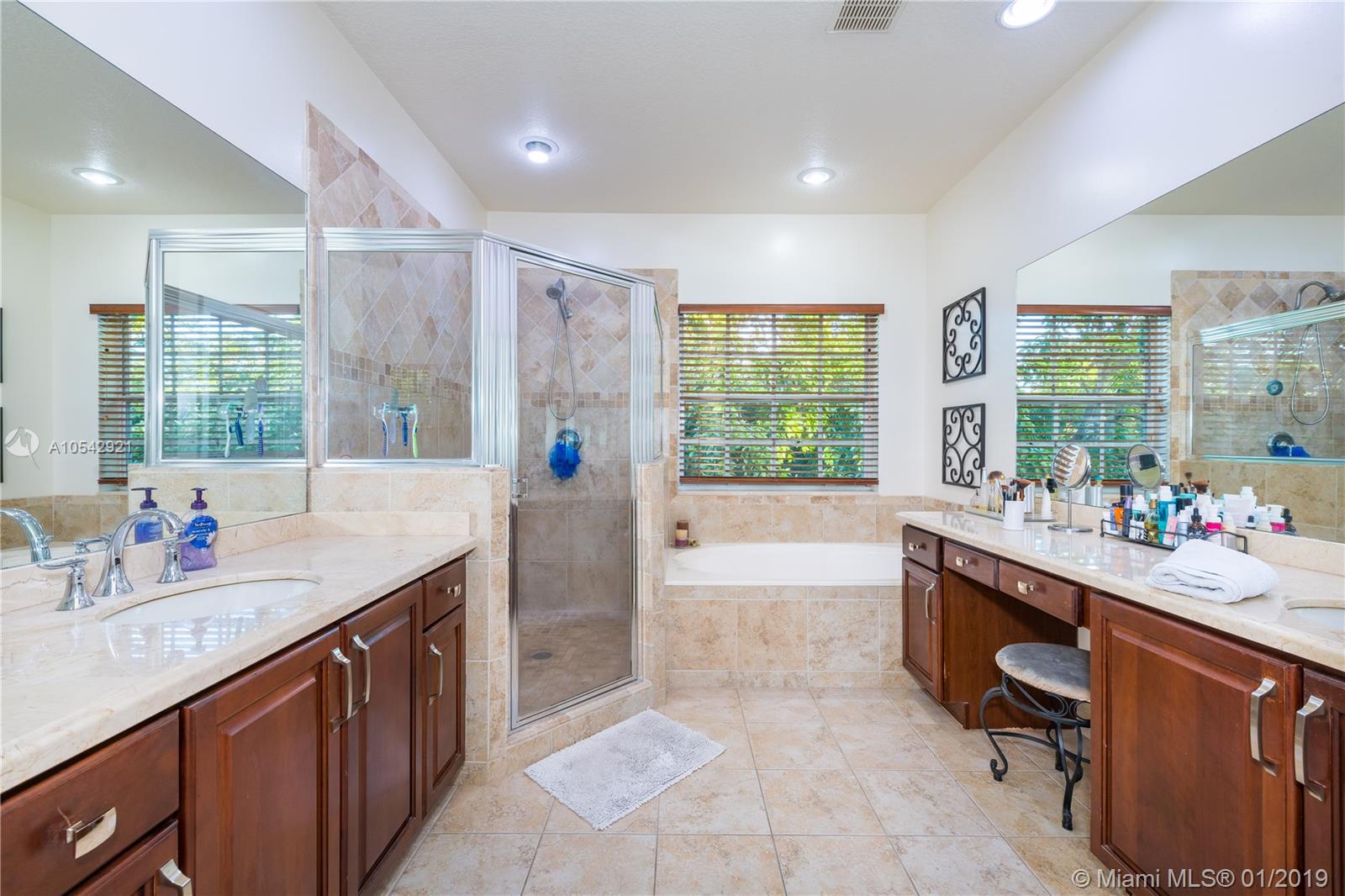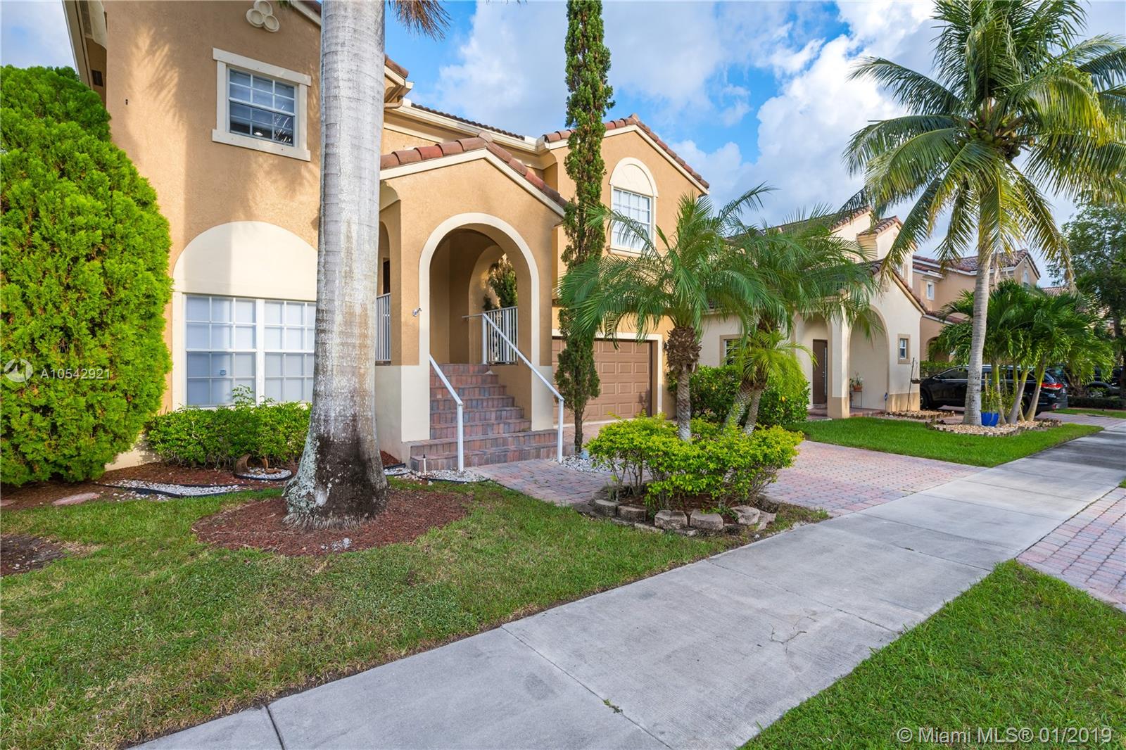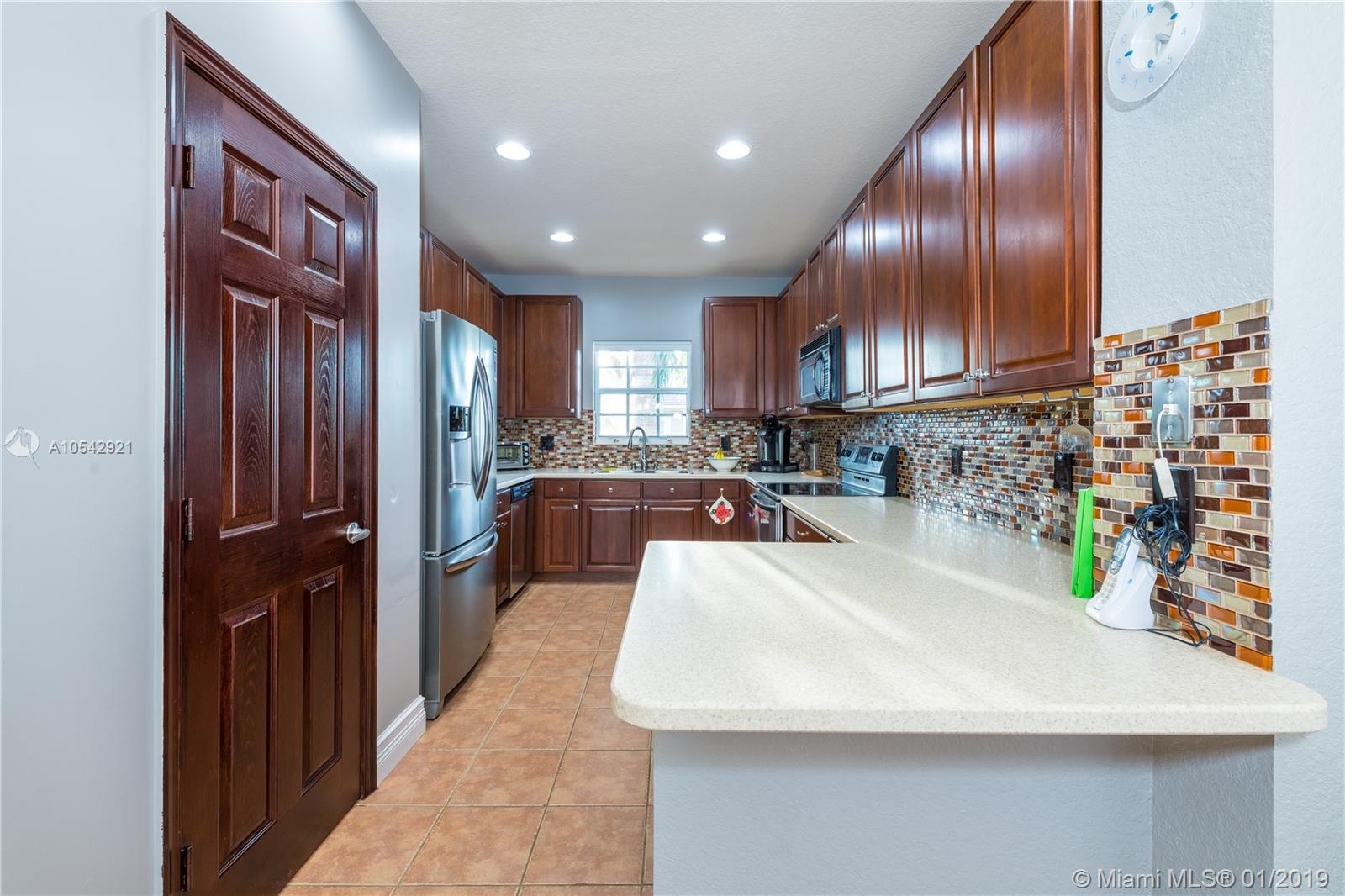 This property is extremely well maintained & comes with beautiful finishing touches such as an upgraded kitchen with corian counter tops, SS appliances, wood cabinets & lots of storage space. A spacious split level floor plan featuring Wood & Tile floors. Newer A/C and Water Heater. Upgraded guest bathrooms. Master Suite on the 2nd floor with a custom built walk-in closet & a large upgraded Master Bath with two granite vanities, Tiled stand-up shower & a separate soaking tub. This home has a huge backyard with a paved patio making a perfect private outdoor space to relax, entertain guests or for kids to play safely. The front curb appeal is enhanced with lush landscaping & a paved driveway leading to the 2 car garage. A MUST SEE!!