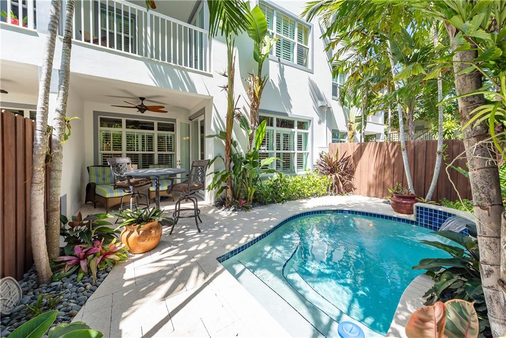 Island Enclave at Victoria Park. This estate-sized 3BR/4BA town home offers 3669 SF of living on three levels. Features include dramatic 3-story ceilings, an open floor plan, a floor-thru staircase, solid wide plank wood and travertine marble flooring and custom finishes throughout. Two new A/C systems (2017). Spacious interiors include: Den, a Family room and Living room, a Breakfast area, a formal Dining room plus a 3rd floor Media room w/built-in wet bar and full bath. A Chef's kitchen has hardwood cabinetry, island w/ counter seating, granite countertops, natural gas cooking and a wine bar. With two covered porches, a balcony, a roof top plaza w/ pergola and a courtyard with private pool this home offers tremendous outdoor living space. Only blocks to Las Olas, minutes to the beach.