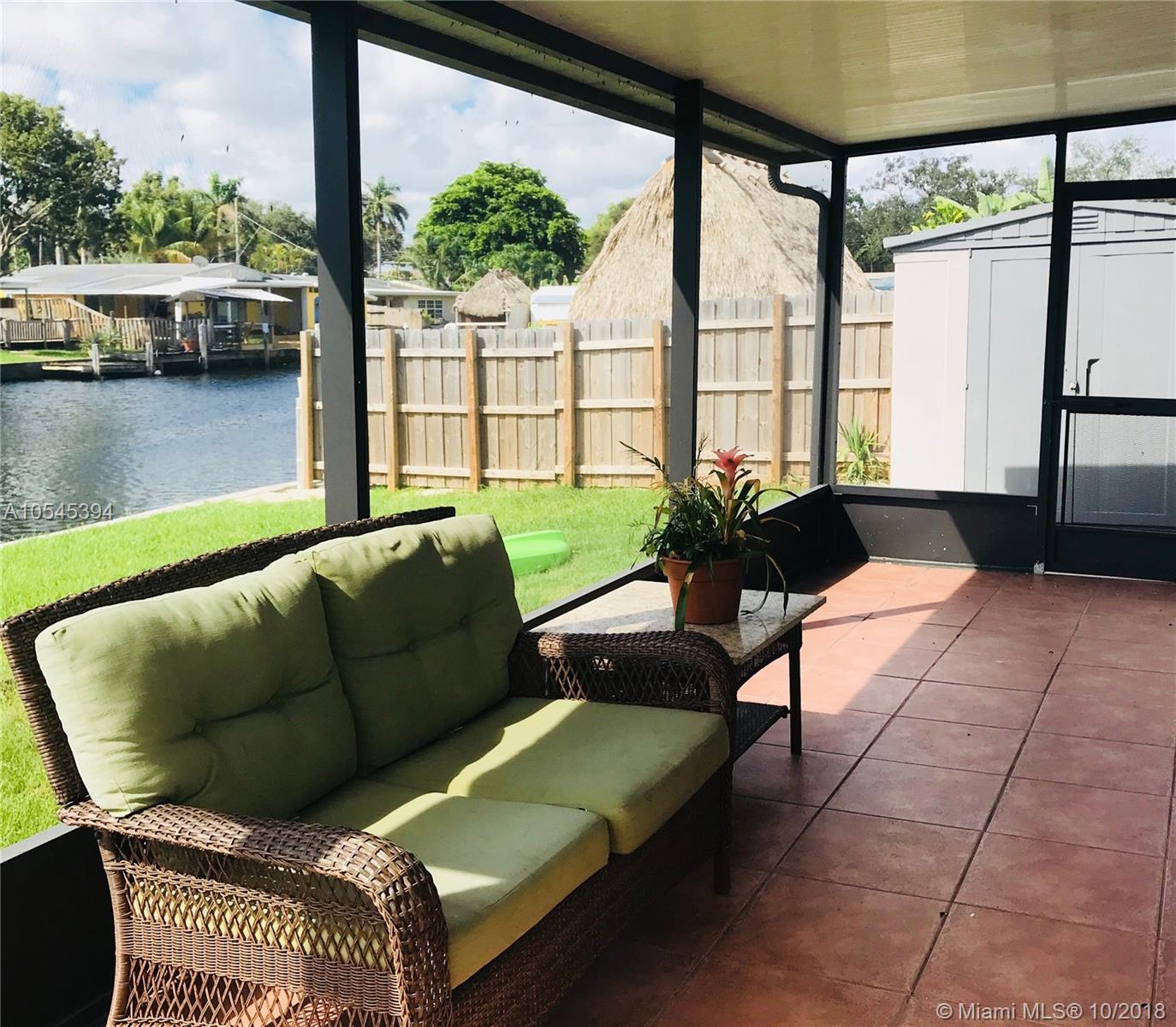 Charming two bedroom one bath home with a bonus room and half bath that could easily be converted to an en suite. Waterfront with deep ocean access, newer boat lift included. The air conditioner was replaced in 2010, roof in 2003, the kitchen has been updated with granite countertops and new cabinets. The floor plan is open with a large screened in porch running along the rear of the property giving you water views for days! Centrally located near I-95, 595, ten minutes to the beaches, 20 minutes to Fort Lauderdale Airport and under an hour to Miami International Airport. Close to Downtown Hollywood for dining, shopping and the Arts Park which often has great outdoor concerts for the community to enjoy. Very clean home, move in condition.