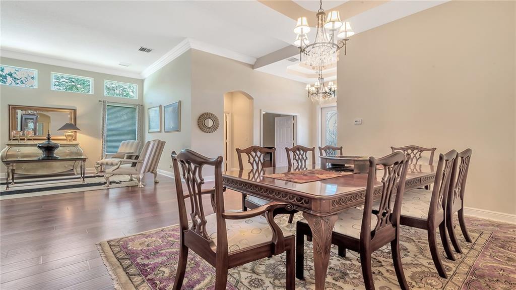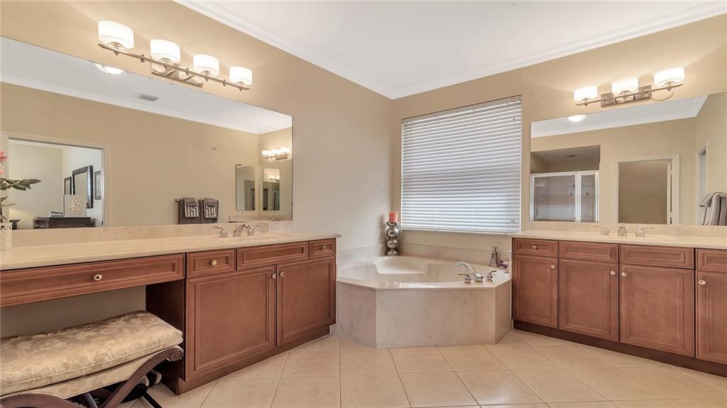 You will enjoy coming home to your impeccable true 4 bdrm 3 full bath home 3 car garage on cul-de-sac w/impact windows & doors.Chef delight gourmet kitchen w/wood cabinets, granite & stainless steel appliances including double wall ovens. Triple split bedrm plan. Master suite has huge walk-in closet & french door to patio. Master bath has dual vanities, separate shower and roman tub. Formal Dining Rm, Formal Living Rm. Enjoy barbequing on your extended dome screen patio w/fully fenced yard. Wood floors throughout. Crown moldings, new a/c system 2014. Please exclude dining rm & entry light fixtures. Wood cabinets in laundry room with tub sink. 24 hr guard gated community, clubhouse w/pool, billiard rm and exercise rm. Resort style living. Motivated seller relocating out to State