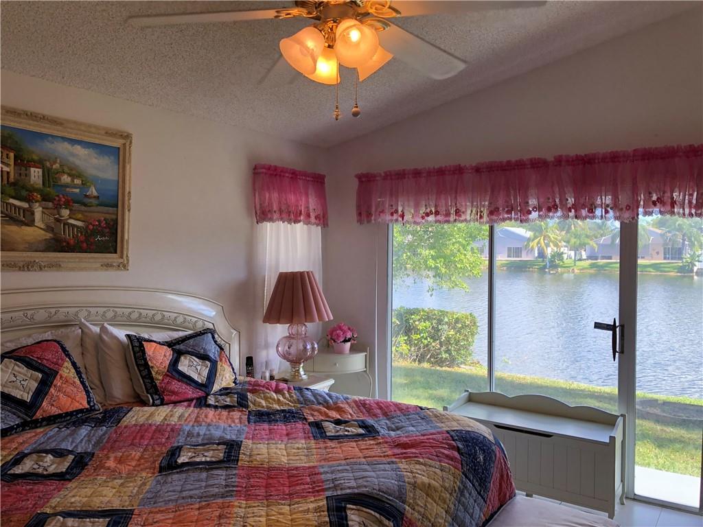 Wide Water View from this lovely 3 bedroom 2 bathroom home. The water views from Living room, dining room and master bedroom. Brand new roof just 1 month old! A/c just 6 years old. Tile floors, vaulted ceilings, french doors lead to the patio. Master bathroom has a roman tub and separate shower. 1 car gar set up as an office but easy to be converted back to the garage. No rental restrictions. No commercial vehicles. Maint fee is $52 per month to Lago Welleby and $36 per quarter to Welleby Management. No screening/applications. Sprinklers as is