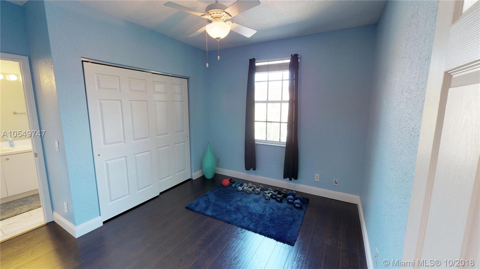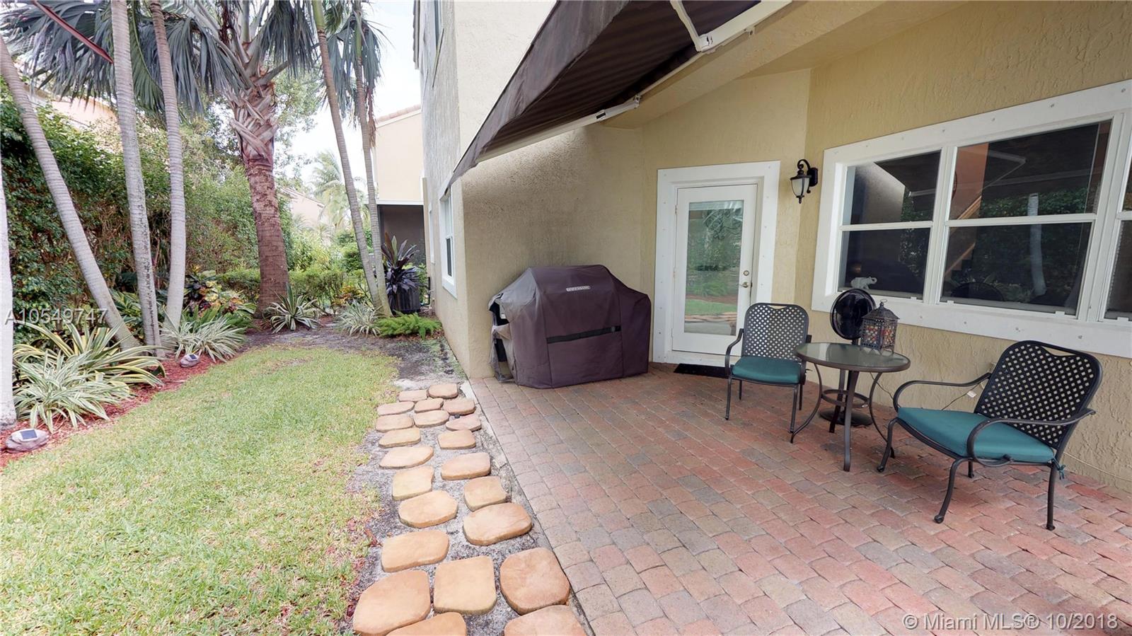 HIGHLY DESIRED GATED VIZCAYA! 2 bedroom 2.5 bathroom plus office that can be used as bedroom (no closet). Neutral tile downstairs & gorgeous high quality wood look laminate upstairs. Kitchen offers newer stainless appliances, over sized sink, maple cabinets. Decorator touches throughout include custom crown molding & baseboards. Plenty of room to entertain indoors and outdoors.Cozy living space perfect for relaxing. Master bathroom & half bathroom have been tastefully upgraded. Master bedroom offers a walk in closet with custom built ins. Office upstairs has built in desks & closet can be added to make it a 3rd bedroom. Jack & Jill bathroom. Laundry room upstairs. Private patio with retractable awing surrounded with lush landscape & hedge. Newer water heater & a/c unit. Excellent schools!