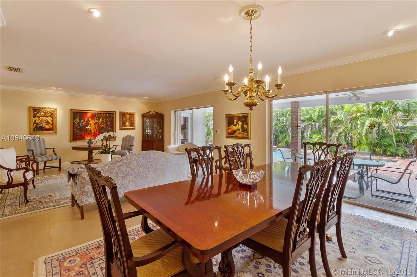 LOCATION, LOCATION, LOCATION! This North Pinecrest Estate is nestled at the end of a quiet CUL-DE-SAC with large mature trees. A beautiful home with 5 bedrooms + Den / 3.5 Bathrooms / 2 car garage, oversized Pool updated Kitchen with wood cabinets, granite, SS appliances, gourmet gas Dacor Range, high vaulted wood beam ceilings, 24x24 rectified Italian tile, Impact Windows/Shutters, New A/C and 2014 Roof. The master bedroom retreat has Bamboo floors and Spa-Styled Bathroom with Private Courtyard. Outdoor areas and chickee hut Bar-B-que area provides enjoyment for full Florida living. Secluded, yet in the mist of everything. Walk to the Royal Palm Tennis Club, or be minutes away to Trader Joe’s, great restaurants, Dadeland Mall, Metrorail, major thoroughfares and the Best Schools.
