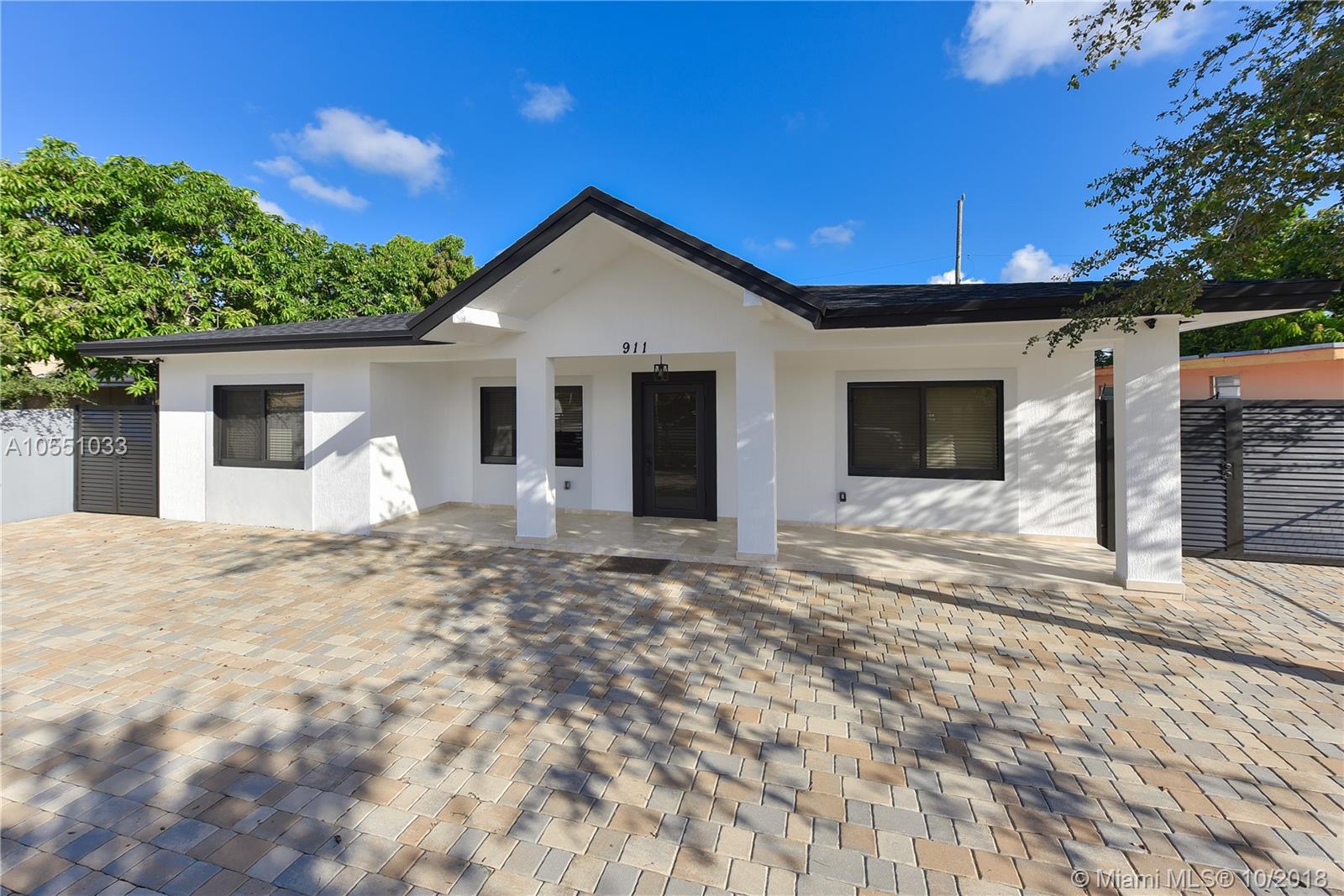 Modern Masterpiece in Hialeah. This 4 bedroom, 3 bath New Home was completed in 2017, and is an absolute perfection. Everything in this home is NEW (foundation, roof, plumbing, electrical, pool, a/c, appliances). No expense spared! The interior of the home has high hat lights throughout every room, two a/c units, top of the line appliances, high end quartz counter tops, and a split bedroom design. The exterior of the home has a huge gated and paved driveway big enough to fit 5 cars, and a 30x15 size pool with a jacuzzi complete with a pool heater and salt system generator filtration. There is a full bath in the outside pool area, a built in BBQ and connections for an outdoor kitchen.