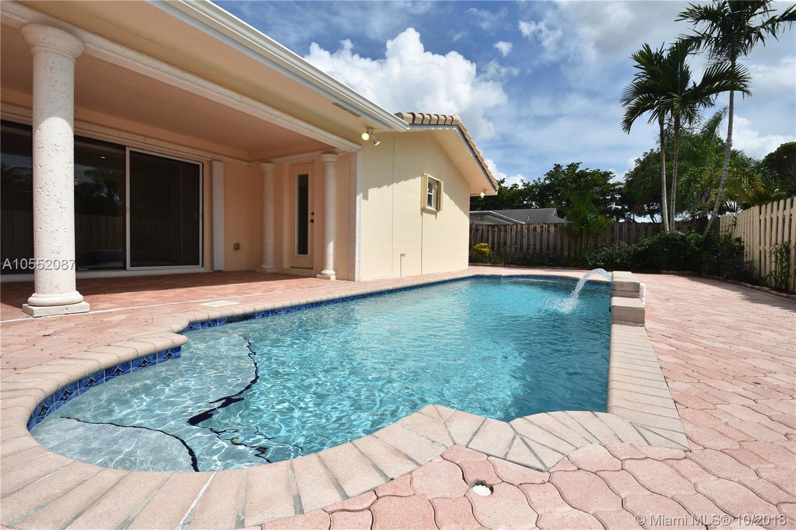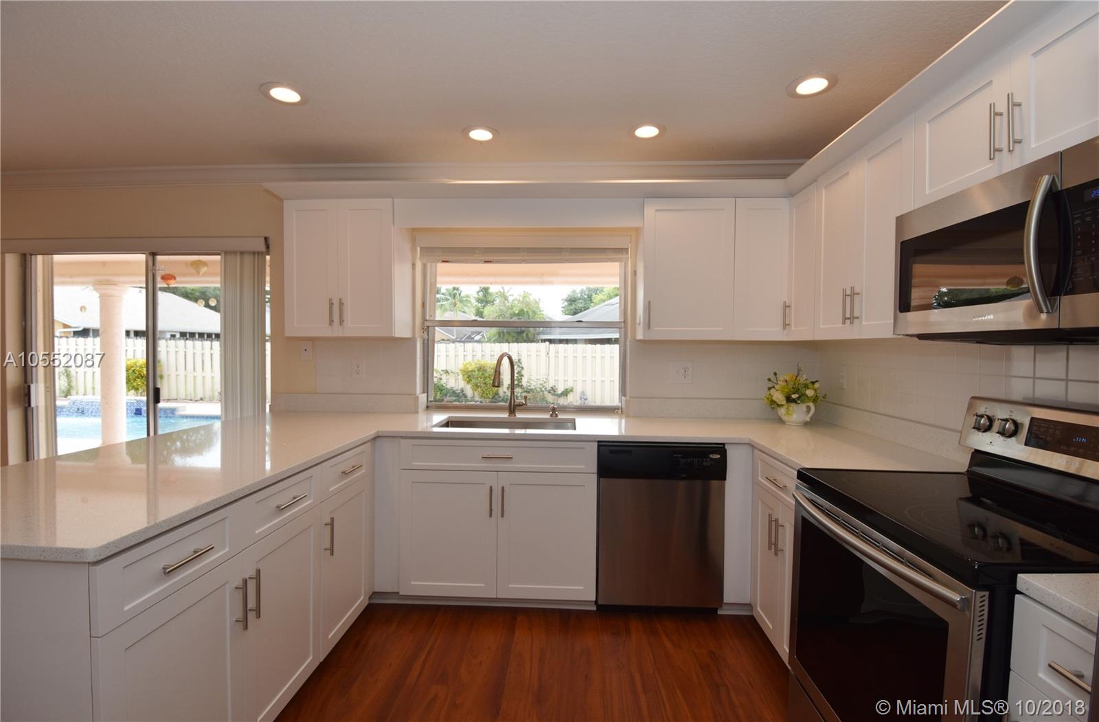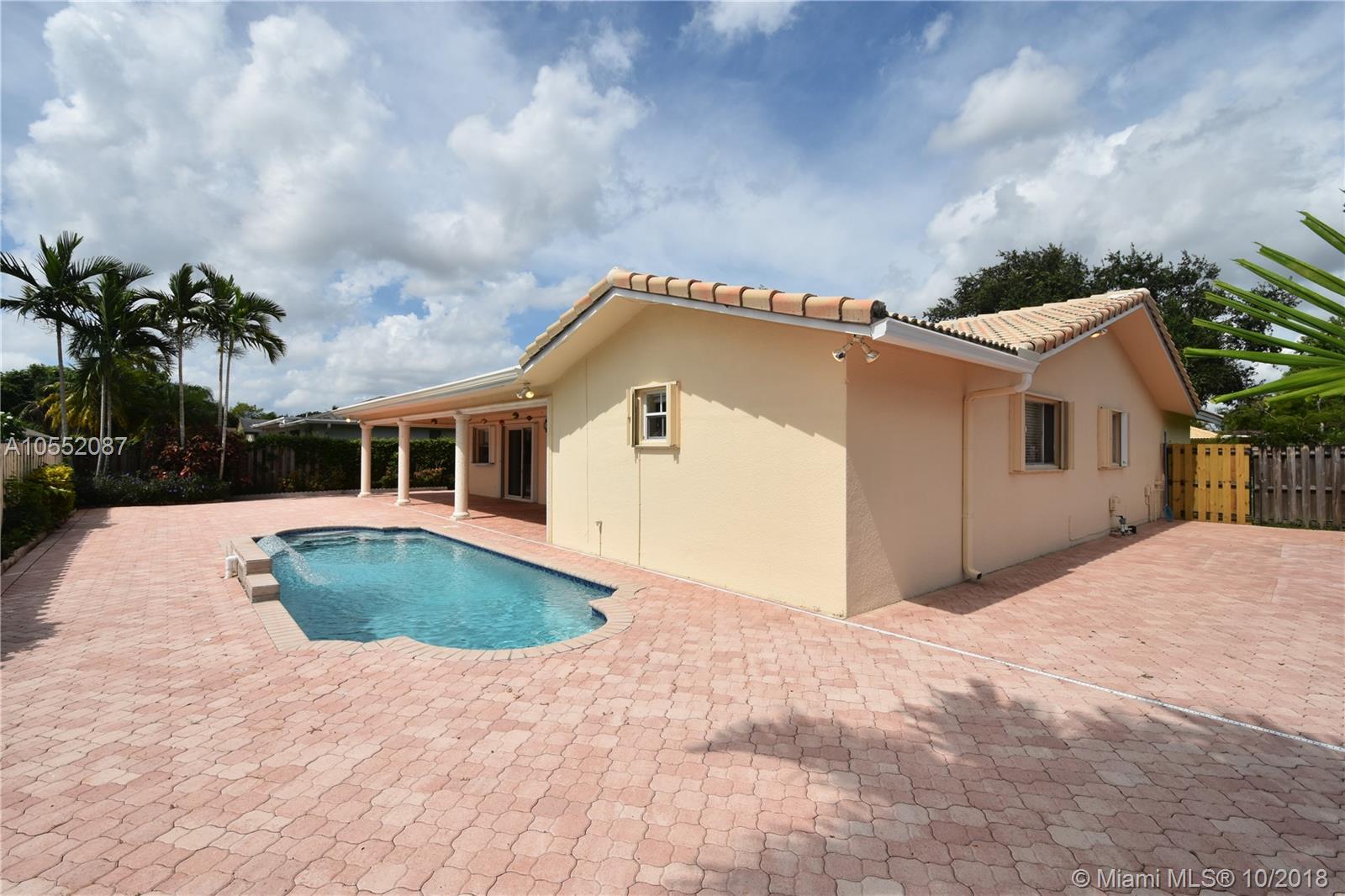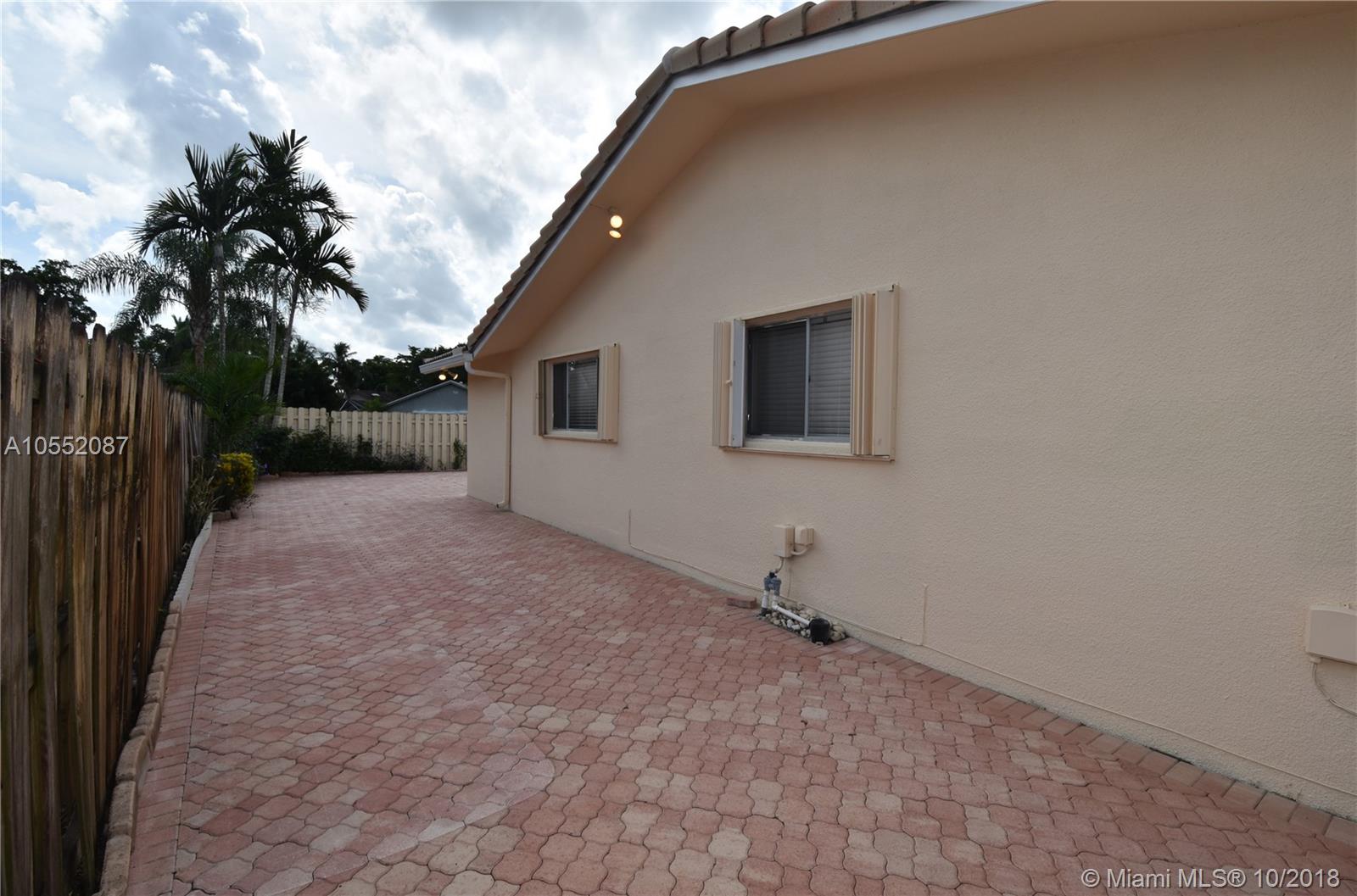 GREAT CURB APPEAL WITH NEW LANDSCAPING, EXTERIOR & INTERIOR PAINT AND FULLY FENCED. FLAT ROOF WAS JUST COMPLETED WITH NEW FASCIA BOARDS & GUTTERS. MAIN ROOF WAS REPLACED ONCE AND CONSTANTLY MAINTAINED AND SEALED. HEATED POOL WITH WATERFALL, "BABY" FENCE & BRICK PAVERS IN BOTH BACK AND SIDE YARDS. ACCORDION SHUTTERS, AC LESS THAN 2 YEARS OLD. - THE INTERIOR WAS RENOVATED FROM CEILING TO FLOOR: TEXTURED CEILINGS, LAMINATE FLOORING, CROWN MOLDING, 6" BASEBOARDS AND NEW HUNTER DOUGLAS BLINDS THROUGHOUT. KITCHEN WAS DONE IN THE LATEST STYLE WITH WHITE CABINETS AND S/S APPLIANCES, UNDER-MOUNT SINK AND QUARTZ COUNTER TOPS (LG 4 DOOR PANTRY). INTERIOR UTILITY ROOM WITH BRAND NEW W/D. ALL BEDROOMS ARE OVER SIZED AND ALL HAVE WALK IN CLOSET. READY TO MOVE IN - NO HOMEOWNERS ASSOCIATION