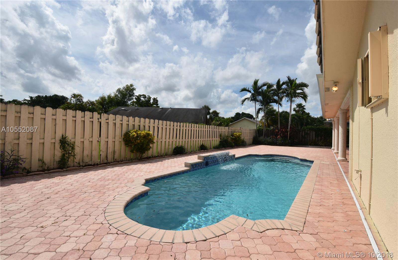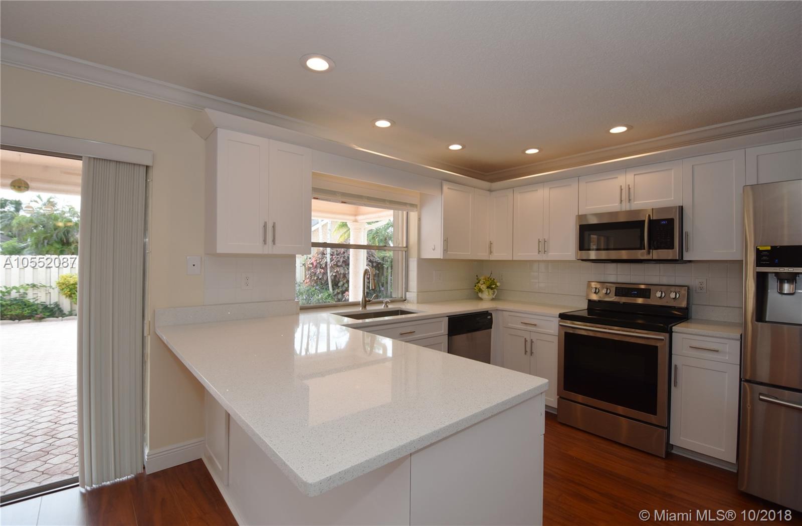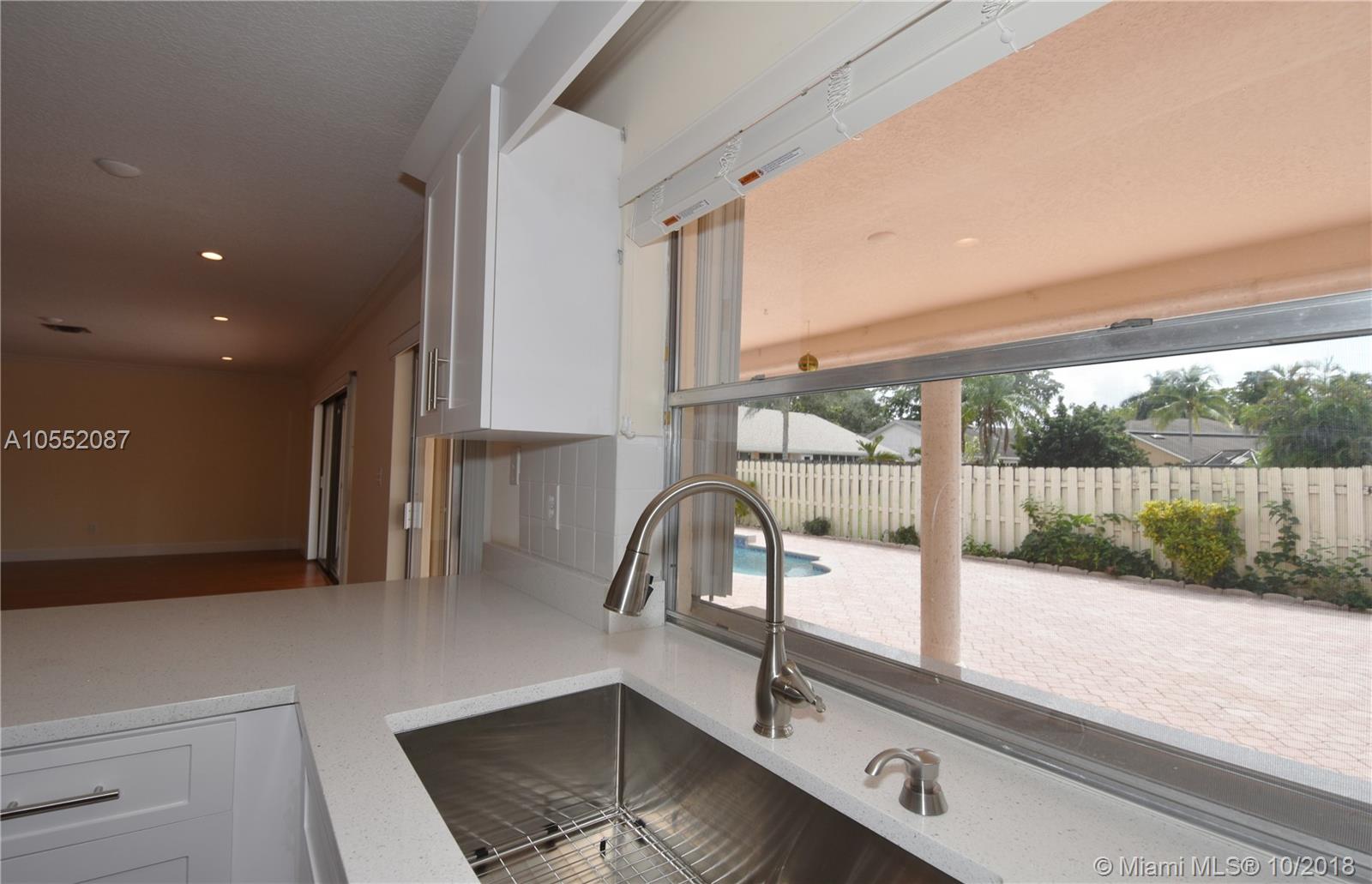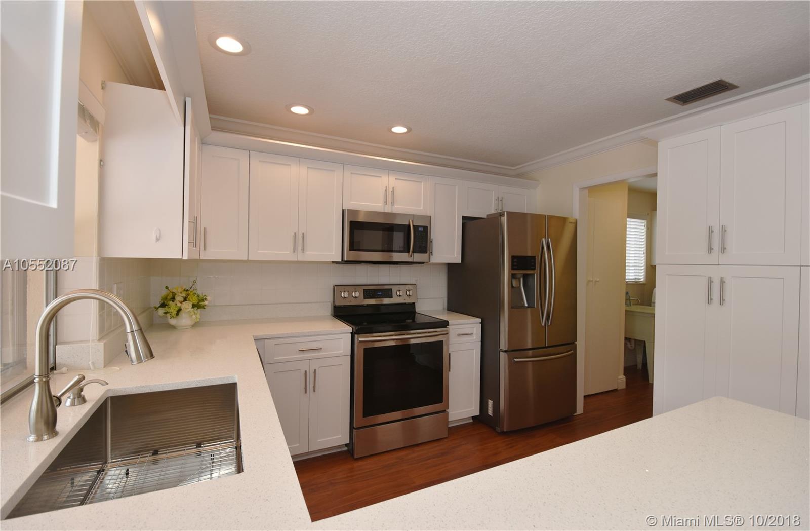 GREAT CURB APPEAL WITH NEW LANDSCAPING, EXTERIOR & INTERIOR PAINT AND FULLY FENCED. FLAT ROOF WAS JUST COMPLETED WITH NEW FASCIA BOARDS & GUTTERS. MAIN ROOF WAS REPLACED ONCE AND CONSTANTLY MAINTAINED AND SEALED. HEATED POOL WITH WATERFALL, "BABY" FENCE & BRICK PAVERS IN BOTH BACK AND SIDE YARDS. ACCORDION SHUTTERS, AC LESS THAN 2 YEARS OLD. - THE INTERIOR WAS RENOVATED FROM CEILING TO FLOOR: TEXTURED CEILINGS, LAMINATE FLOORING, CROWN MOLDING, 6" BASEBOARDS AND NEW HUNTER DOUGLAS BLINDS THROUGHOUT. KITCHEN WAS DONE IN THE LATEST STYLE WITH WHITE CABINETS AND S/S APPLIANCES, UNDER-MOUNT SINK AND QUARTZ COUNTER TOPS (LG 4 DOOR PANTRY). INTERIOR UTILITY ROOM WITH BRAND NEW W/D. ALL BEDROOMS ARE OVER SIZED AND ALL HAVE WALK IN CLOSET. READY TO MOVE IN - NO HOMEOWNERS ASSOCIATION
