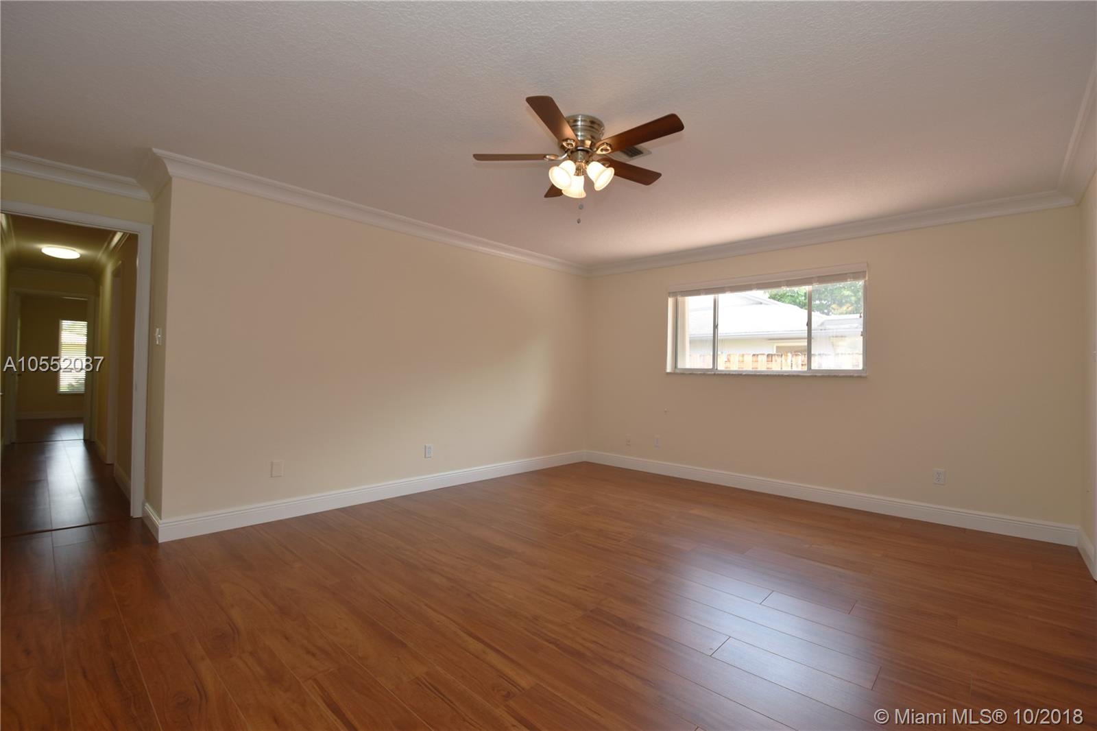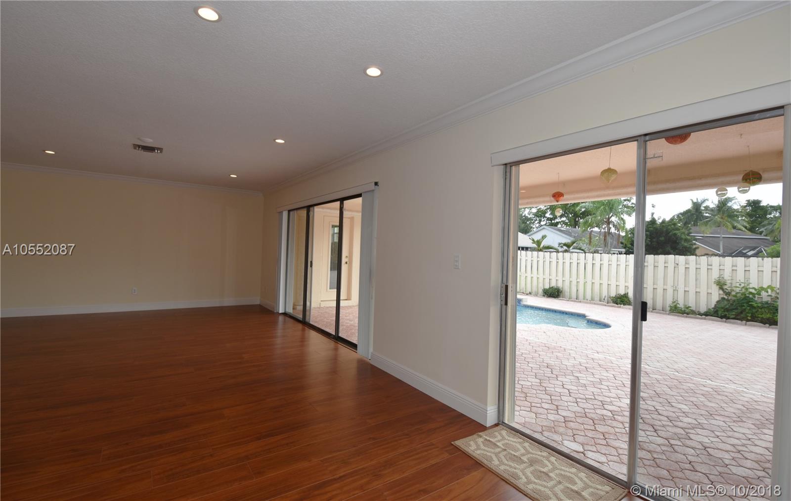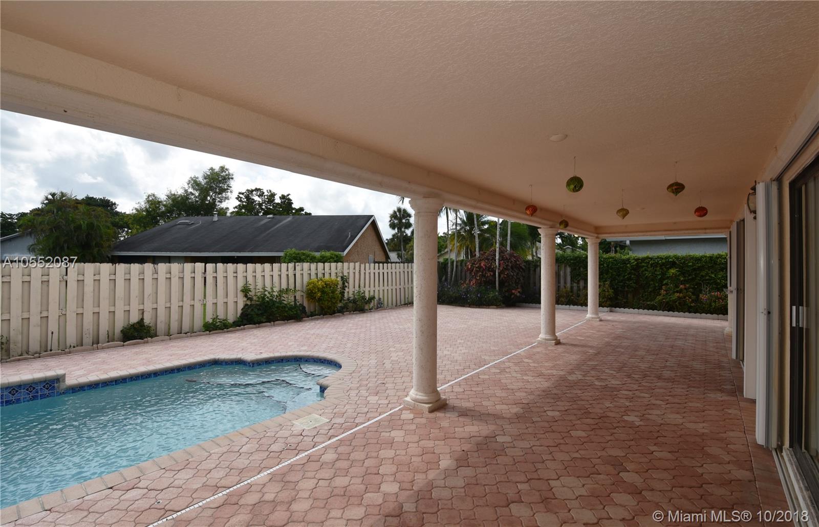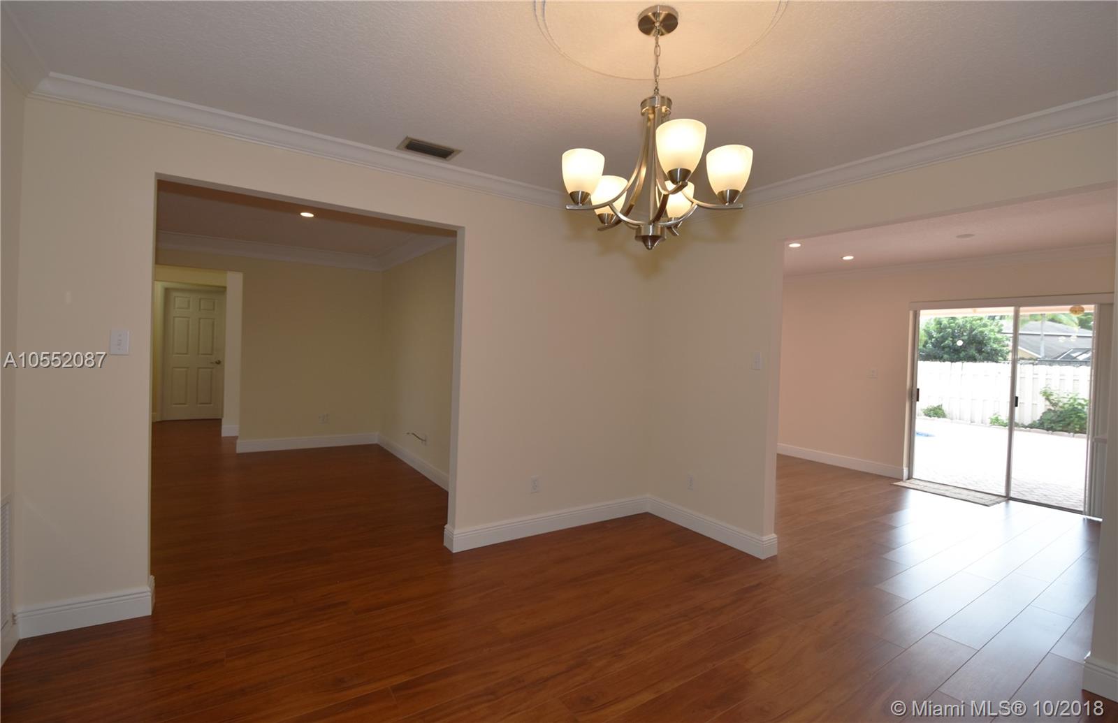 GREAT CURB APPEAL WITH NEW LANDSCAPING, EXTERIOR & INTERIOR PAINT AND FULLY FENCED. FLAT ROOF WAS JUST COMPLETED WITH NEW FASCIA BOARDS & GUTTERS. MAIN ROOF WAS REPLACED ONCE AND CONSTANTLY MAINTAINED AND SEALED. HEATED POOL WITH WATERFALL, "BABY" FENCE & BRICK PAVERS IN BOTH BACK AND SIDE YARDS. ACCORDION SHUTTERS, AC LESS THAN 2 YEARS OLD. - THE INTERIOR WAS RENOVATED FROM CEILING TO FLOOR: TEXTURED CEILINGS, LAMINATE FLOORING, CROWN MOLDING, 6" BASEBOARDS AND NEW HUNTER DOUGLAS BLINDS THROUGHOUT. KITCHEN WAS DONE IN THE LATEST STYLE WITH WHITE CABINETS AND S/S APPLIANCES, UNDER-MOUNT SINK AND QUARTZ COUNTER TOPS (LG 4 DOOR PANTRY). INTERIOR UTILITY ROOM WITH BRAND NEW W/D. ALL BEDROOMS ARE OVER SIZED AND ALL HAVE WALK IN CLOSET. READY TO MOVE IN - NO HOMEOWNERS ASSOCIATION