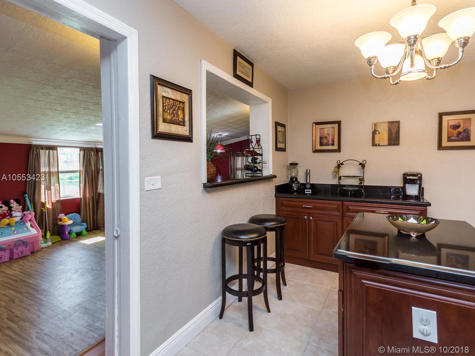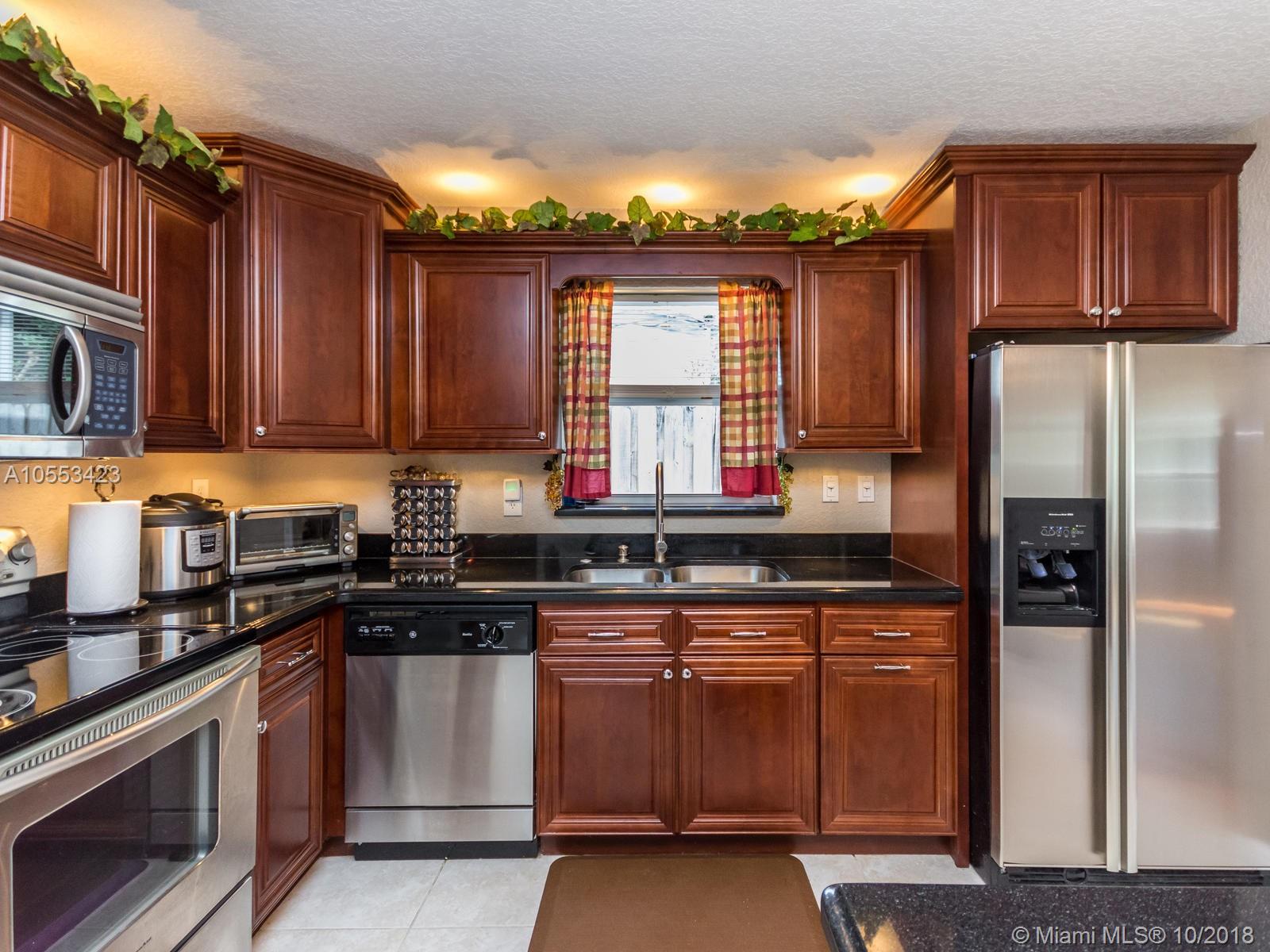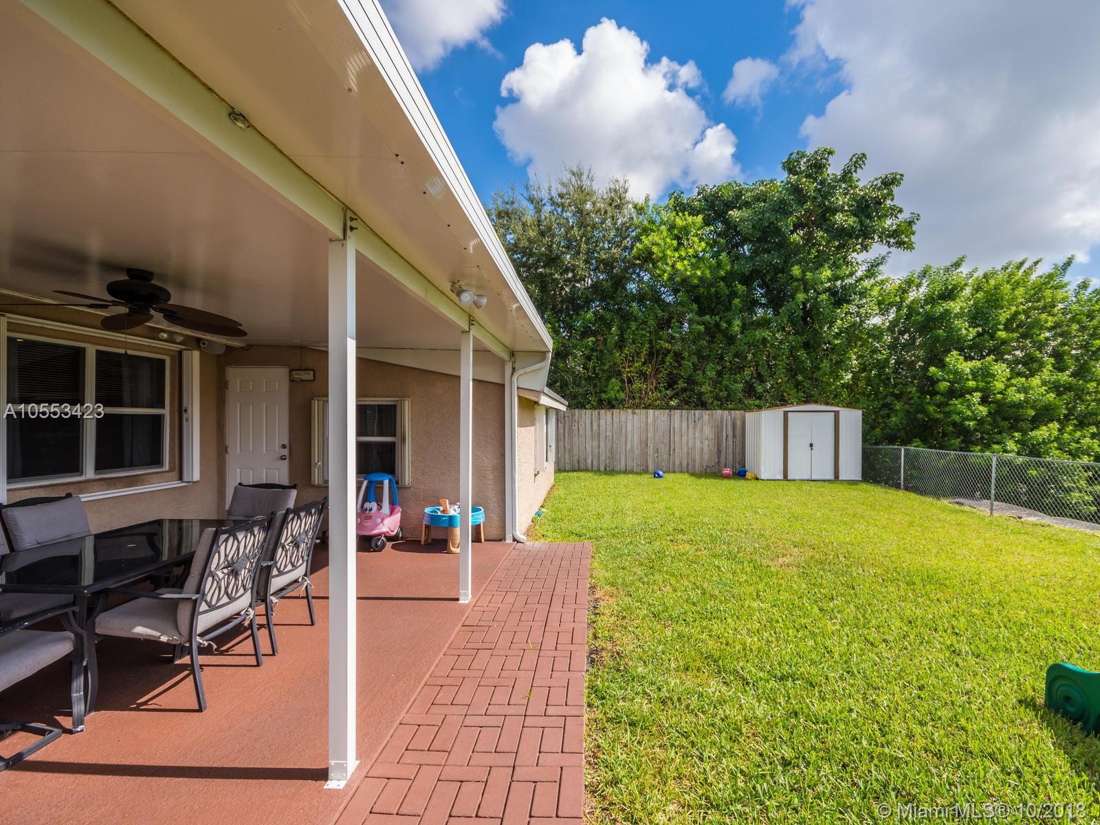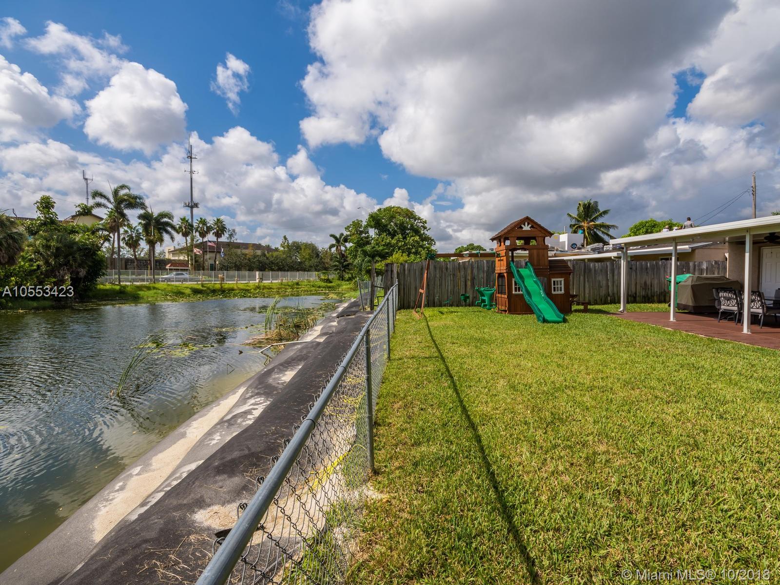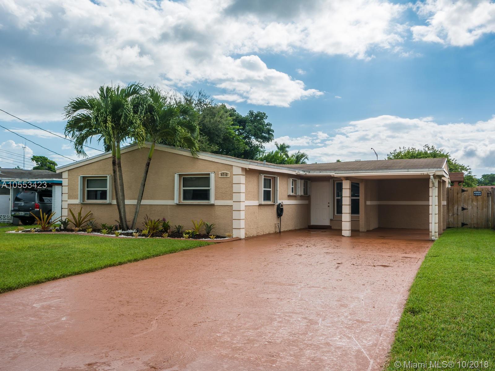 Don't miss this charming 3 bed, 2 bath waterfront home in Miramar. Featuring covered parking and a freshly sealed driveway, it's located close to all major highways. Enjoy cooking in the upgraded kitchen with stainless appliances, upgraded cabinets and granite countertops. You can eat your meal on the covered back porch while you overlook the peaceful water view and cool off with the overhead fan while watching the big game on the tv. Or enjoy the game only minutes from your home to the Hard Rock Stadium! The lawn and landscaping are very well maintained with the sprinkler system. Accordion shutters on the windows and hurricane rated doors keep you safe during a storm. Roof installed in 2009. Includes an 8 camera security system accessible remotely on your phone. NO ASSOCIATION!