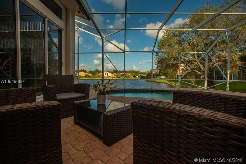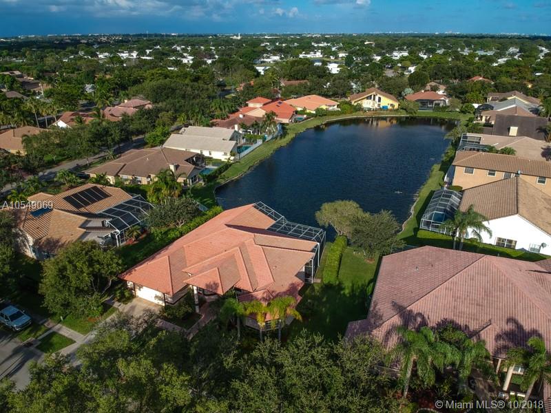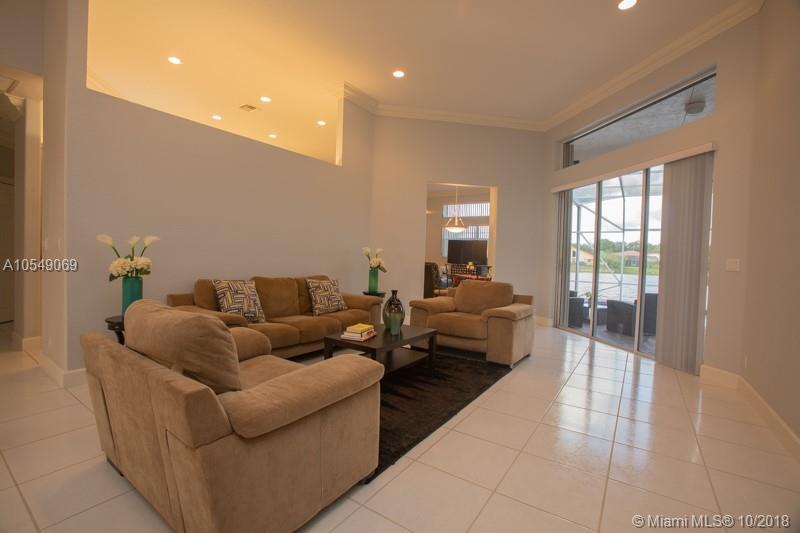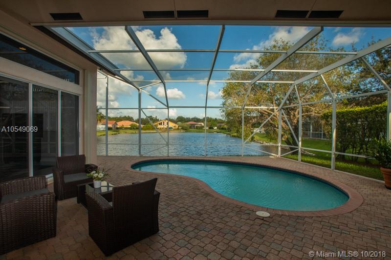 Dream home with amazing long lake views in the quiet gated community of Enclave at Jacaranda Lakes. Excellently maintained and updated. Enjoy delightful moments by the pool overlooking the beautiful lake, or indoors in the spacious living areas. This ideal home features soaring high ceilings, superior lighting system, elegant crown moldings throughout the house, high end security system equipped with high definition cameras that can be monitored remotely from a cellular phone, new stainless steel appliances, large kitchen with granite counter tops, tile and wood floors, Accordion shutters, Screened enclosed pool and deck area, two car garage, sprinkler system, and beautifully landscaped.