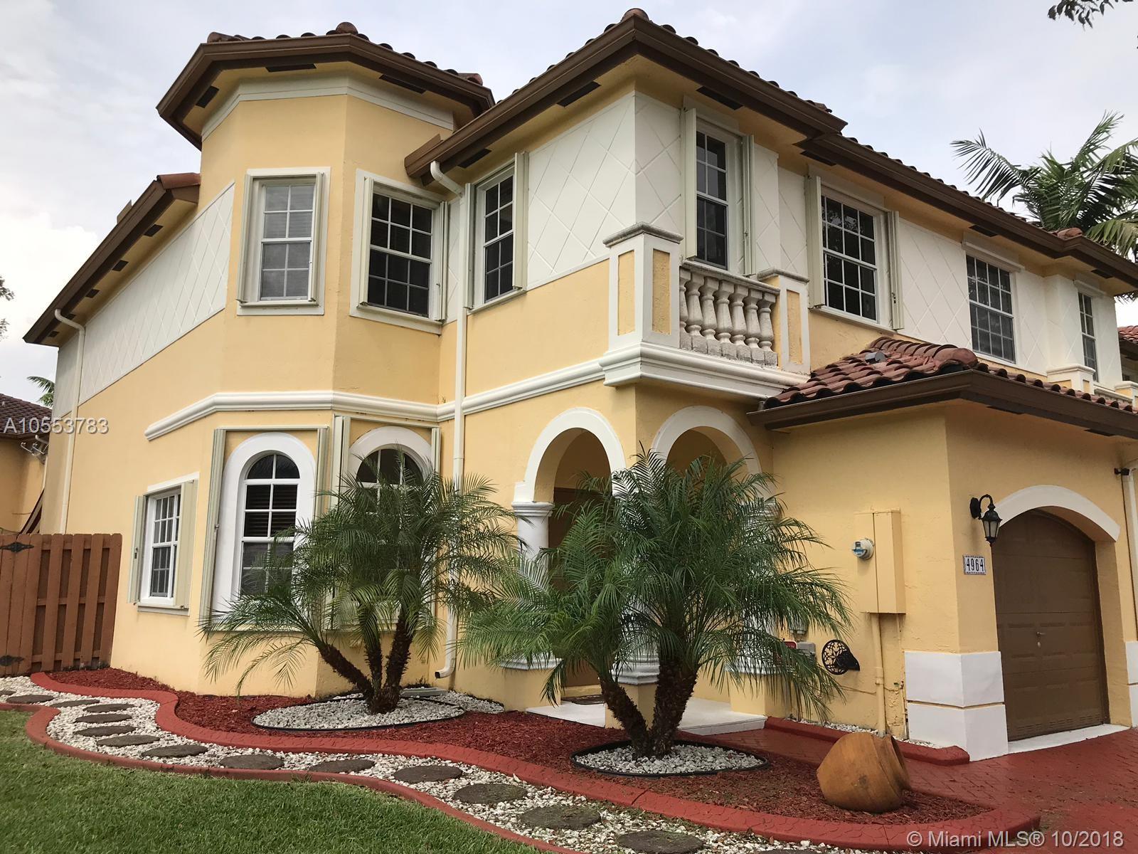 Excellent Opportunity to purchase an impeccable 4/2.5, 2-Story Corner Townhouse in beautiful community of Santorini at Vizcaya. Completely remodeled for owner’s use, not a flip. All high-end materials and exquisite taste. Excellent floor plan, great for entertaining. Beautiful tile and laminated flooring, crown molding, spacious kitchen with granite counter top and SS appliances. All bathrooms remodeled and all closets built-in. Private fenced patio with retractable awning. Accordion shutters and blinds on all windows. AC is less than a year old. One-car garage + two-car driveway + one on approach; guest parking lot across the street. Gated Community w/24-hr security, pool, gym, playground and more. Centrally located close to schools, shopping & major highways. Must see to appreciate!!!