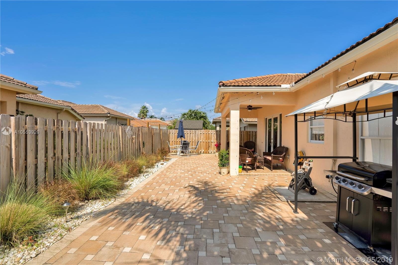 Beautiful Florida Style one story home with great fenced and remodeled back yard that has ceiling fans and a covered terrace great for entertaining. Home features split floor plan with 3 Bedrooms and 2 and half bathrooms. The North wing of the home has 2 Bedrooms and a full bathroom, the South wing has the Master Bedroom with complete privacy and half a bathroom in the middle of the home for guests. Formal living room and dining room areas are very spacious. The kitchen opens wide into the Family Room that leads to the back yard for fun entertainment or great quiet dinners. Free Style and care free living with an Association that covers gated security, common areas and cutting of the grass so you can enjoy a relaxed Florida Living.