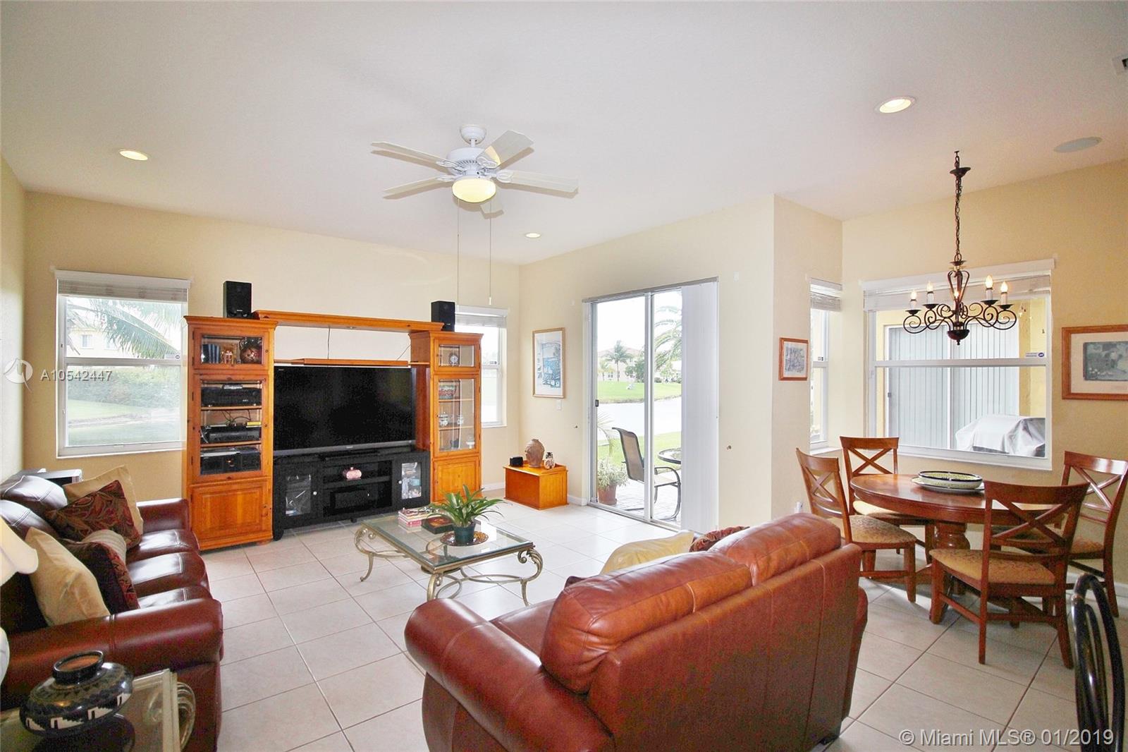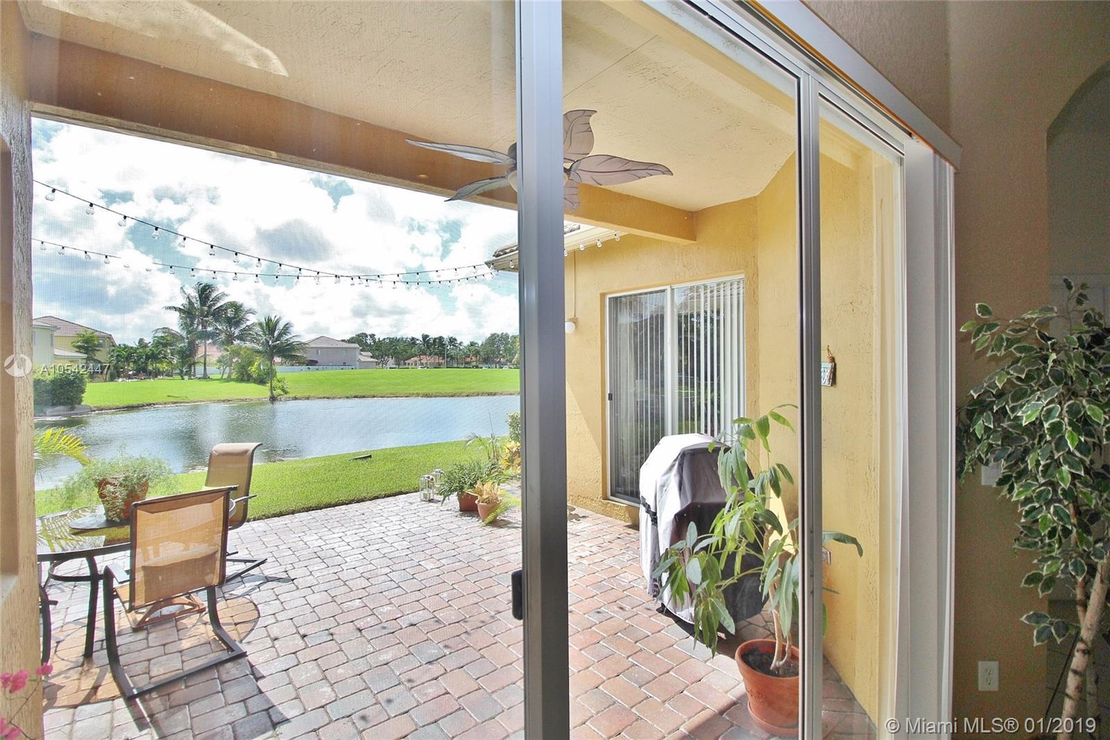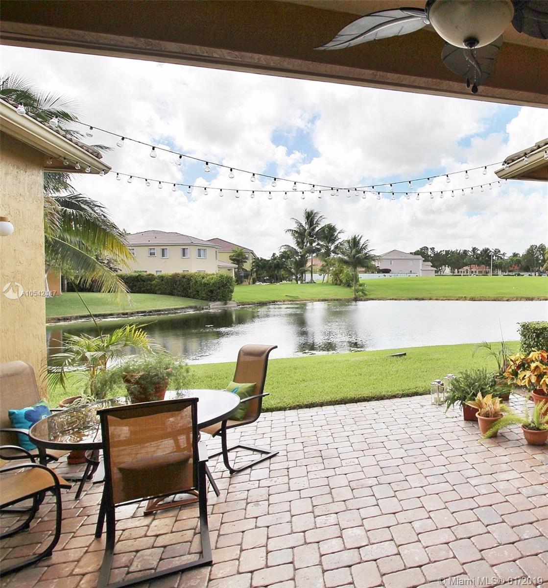 One of the best, waterfront sites in the desirable gated community of Monarch Lakes. Spectacular sunsets abound in this well-maintained, one-story home on a quiet cul-de-sac featuring vaulted ceilings and a great room with breathtaking, wide lake views. Open concept kitchen with BRAND NEW SS APPLIANCES, four bedrooms, 2.5 bathrooms, and stunning backyard with room for a pool. Amenities include a clubhouse, community pool, tennis, basketball, volleyball, playground, security, and picnic areas. Low HOA fee. Prime location just minutes away from I-75 and Turnpike. Close to mall, restaurants, beaches, and hospitals .