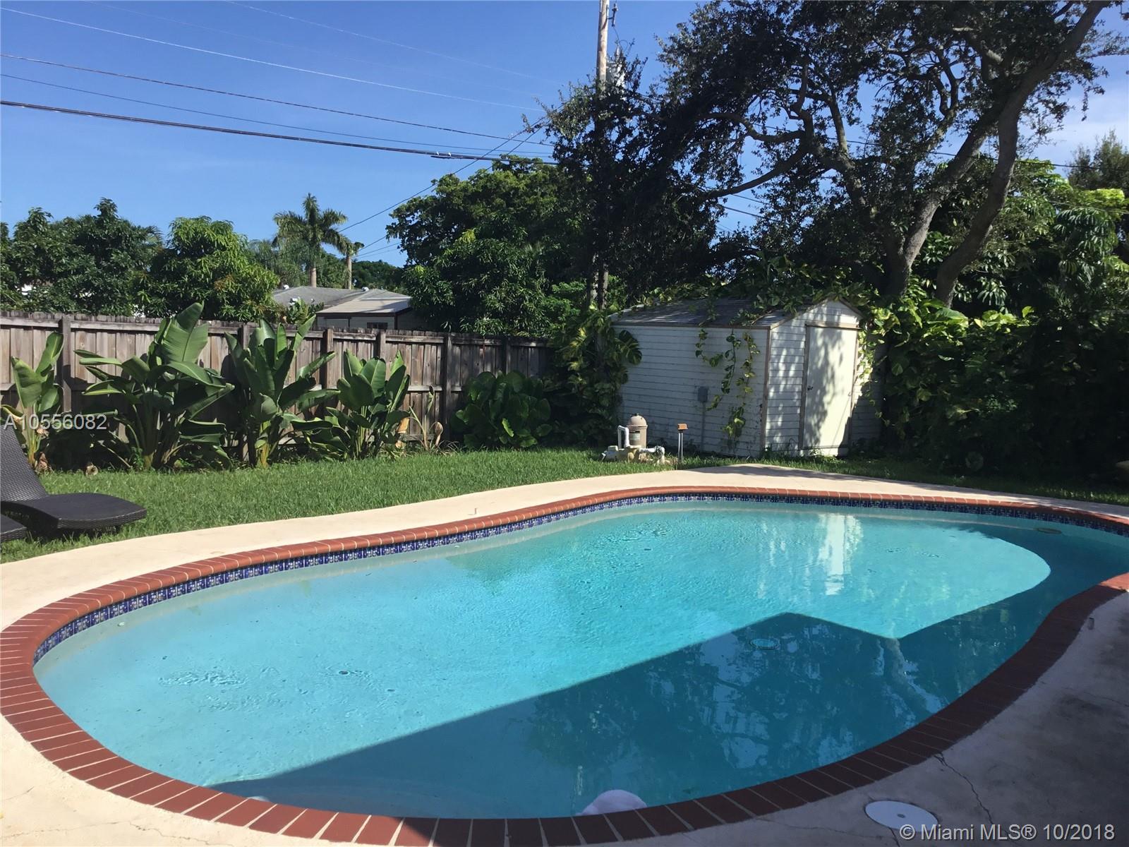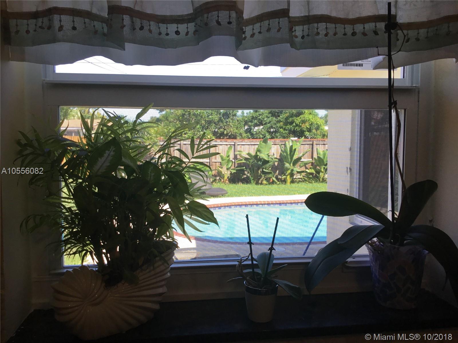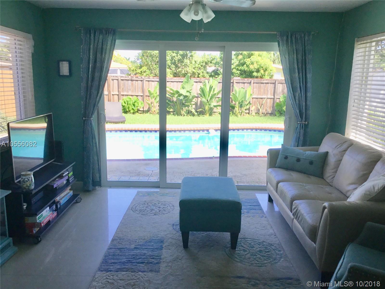 Pool home on beautiful quiet street off Park Road in Hollywood. Great neighborhood, close to 95 and across the street from Memorial Hospital. Open floor plan features spacious living area and bright Florida room. All windows are hurricane impact. Porcelain tile and crown molding throughout home. Kitchen features wood cabinets, granite countertops and new appliances. Refinished garage is sealed and can count as extra bedroom. Landscaped yard has plenty of room and a shed for extra storage. Beautiful view of the pool and landscaped yard through a three panel sliding door in the Florida room.