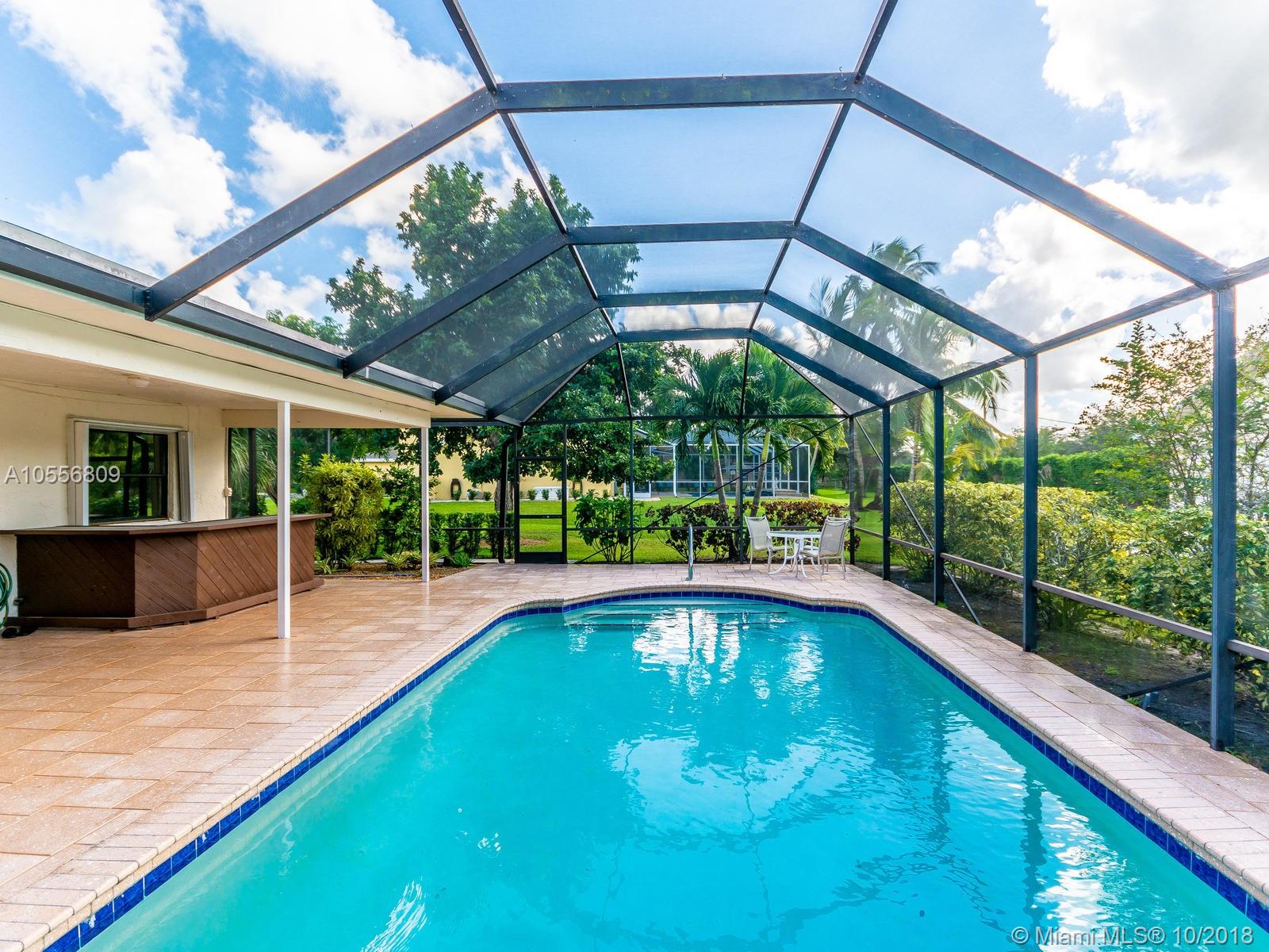 Beautiful 4/2 on a builders acre. Screened in pool with stone pavers, seperate hot tub,dual A/C units, Neutral tile floors throughout the living areas. Accordian hurricane shutters, freshly painted inside and out, Brand new screens,Alarm system, Bahama shutters on sliding doors, circular drive, paver stone walkway, Side loading 2 car garage. Additional 2 car garage in the back with electric and plumbing. Large avocado and mango trees! Septic tank was just cleaned out and serviced October. New pebble coat look on garage floor. Awesome lot on the canal. Great neighborhood of all custom built executive homes. NO HOA! Bring your boat and RV! Priced low to allow new buyers to update kitchen and baths to their taste. Same owner for over 36 years has meticulously cared for this immaculate home.
