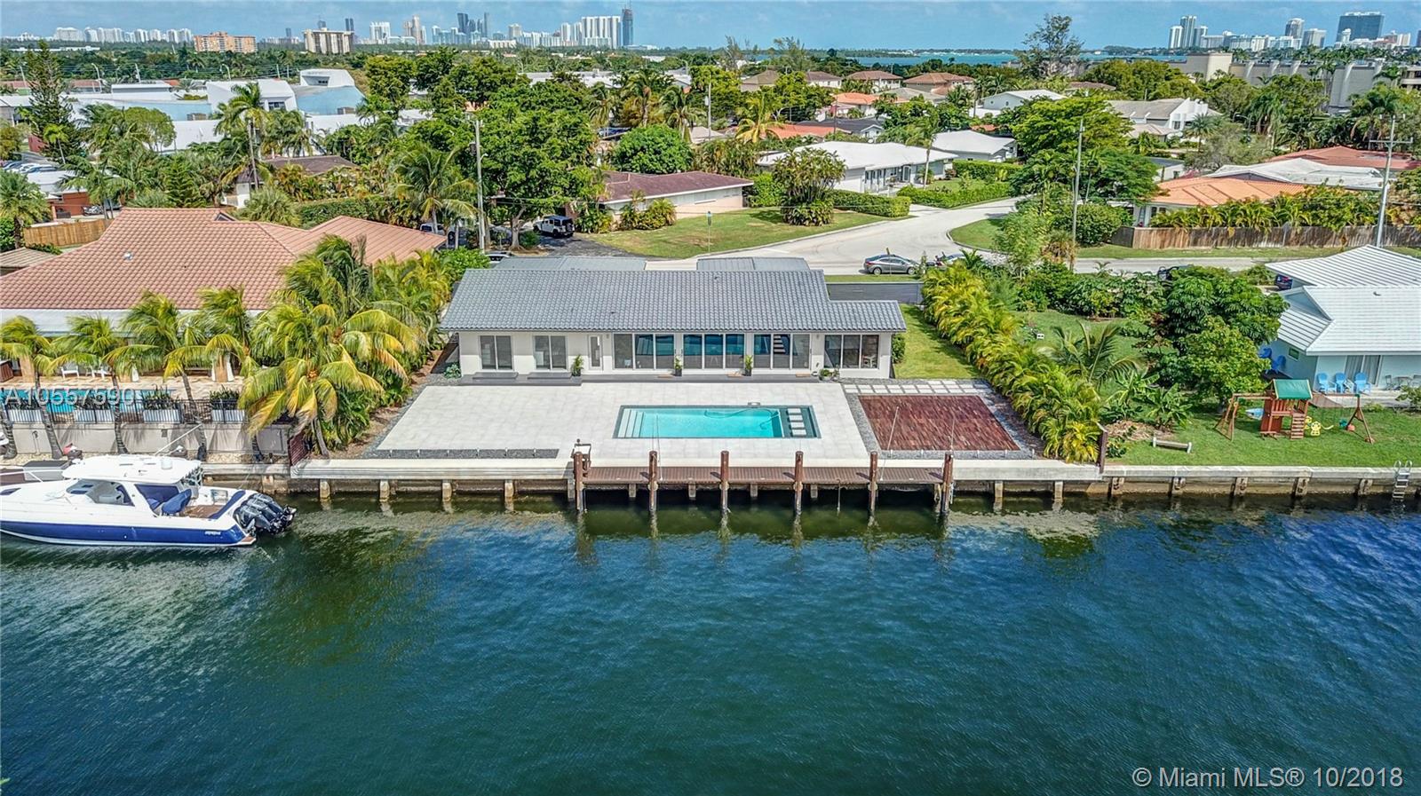 Stunning Modern Waterfront Residence reconstructed & expanded in 2014 w/112 ft brand new seawall, only 300 ft from open bay w/ no bridges, brand new dock. 1.5 lots w/ to huge yard & Brand New Pool & Deck. Open Concept, High-End Quartz kitchen & Baths, Subzero, Viking Appliances, Hans Grohe Fixtures, All Impact Windows & Sliding Doors To Water give maximum light & view. Currently set up as Master Suite, plus 2nd,3rd,4th bedrooms w/ 2nd & 3rd bath, plus a bonus room (could be 5th bed/office). All New Electrical & Plumbing, most exterior walls & Foundation from 1967. "Owner Financing Available". 5th bed is open to make a bonus room great for office, playroom, bar, media room.