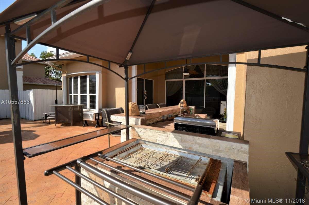 ENTERTAINERS PARADISE!! Beautifully remodeled pool home on oversized lot on a cul de sac in the Huntington community of Miramar. This 4 bedroom, 3 bath home was fully remodeled in the last 4 years including new roof, new A/C, and new bathrooms. Kitchen has been fully remodeled including cabinets, quartz counter tops, a large island with wine refrigerator and s/s appliances. Indoor cherrywood bar with built in wine cooler and a projection television system with surround sound throughout the house. Fantastic built in outdoor summer kitchen featuring wine bar and caja china. Pool safety fence included. Indoor and outdoor video security system. Accordion shutters. Retractable exterior awning. Easy access to all major highways and close to shopping and great dining. Excellent schools.