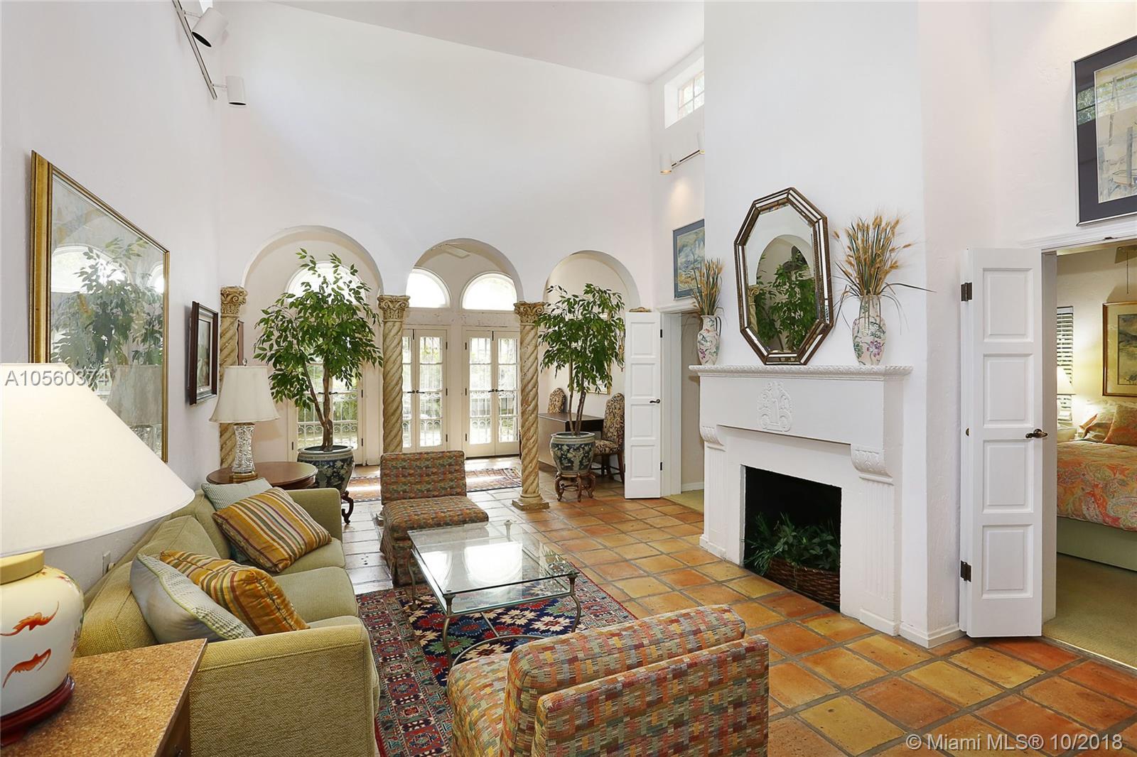 This 3br/3ba home is situated on one of the prettiest Gables streets & just steps from the Granada golf course! It is truly special with Moorish details & arches, 2 story ceiling in the living room, Pecky Cypress front door & ceiling details, working fireplace, open floor plan & split bedroom layout. The newly renovated kitchen opens to a dining area that accesses the screened patio, perfect for grilling or outside dining. The front of the house also enjoys a wonderful vantage from the beautiful patio with cut coral floors & lush landscaping. The home has been lovingly maintained & features a master suite downstairs with one more bedroom or den down, an office & private bedroom upstairs that can be accessed from a side door. Detached garage, laundry room, 2012 roof, & gorgeous details.