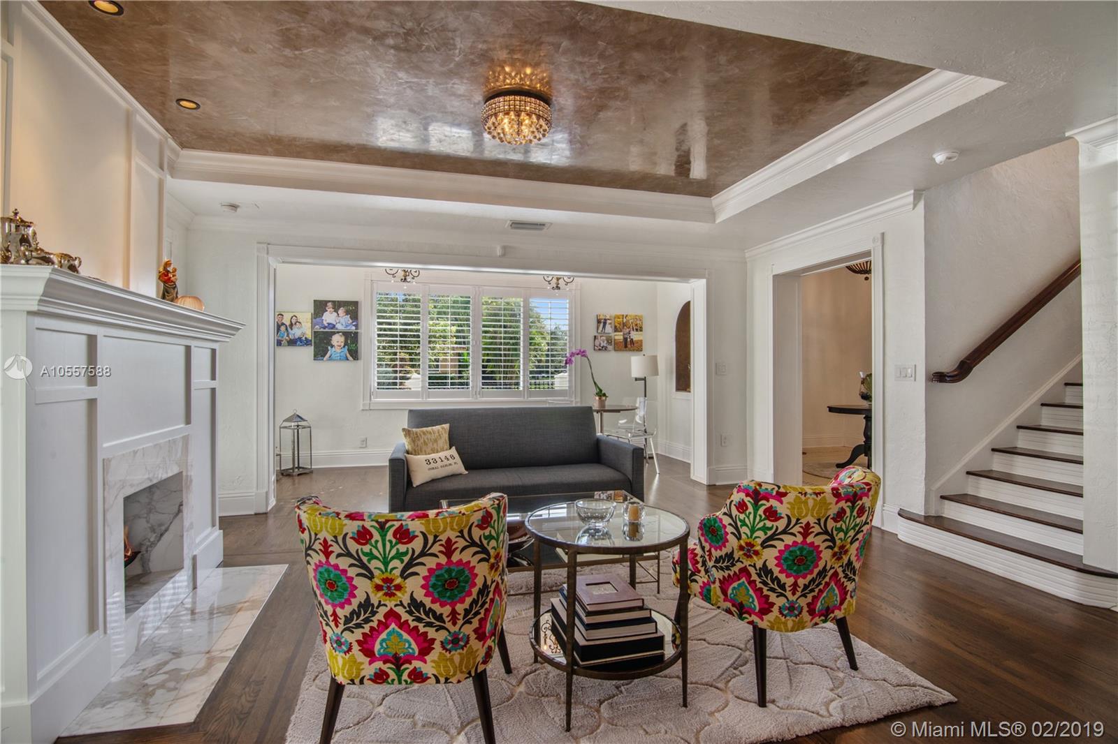 Completely renovated Mediterranean masterpiece, with a seamless 2010 addition,offering a classic contemporary modern design.Brimming with architectural beauty such as a grand foyer entrance, delicately refinished wood floors,Calacatta marble fireplace,recessed ceilings enhanced with state of the art lighting, security,sound,camera and irrigation systems.Upstairs,a spacious & dramatic master suite with custom vanities, quartz countertop,metallic paint,venetian mirrors,a glorious terrace + an additional bedroom with ensuite bath. 3 bedrooms,2 baths downstairs.Pretty pool and spa w/ remote waterfall, fountain, a tranquil covered lanai & summer kitchen. Walled & gated for privacy, this residence offers immense curb appeal near Riviera Country club, fine dining, theaters, neighborhood parks..