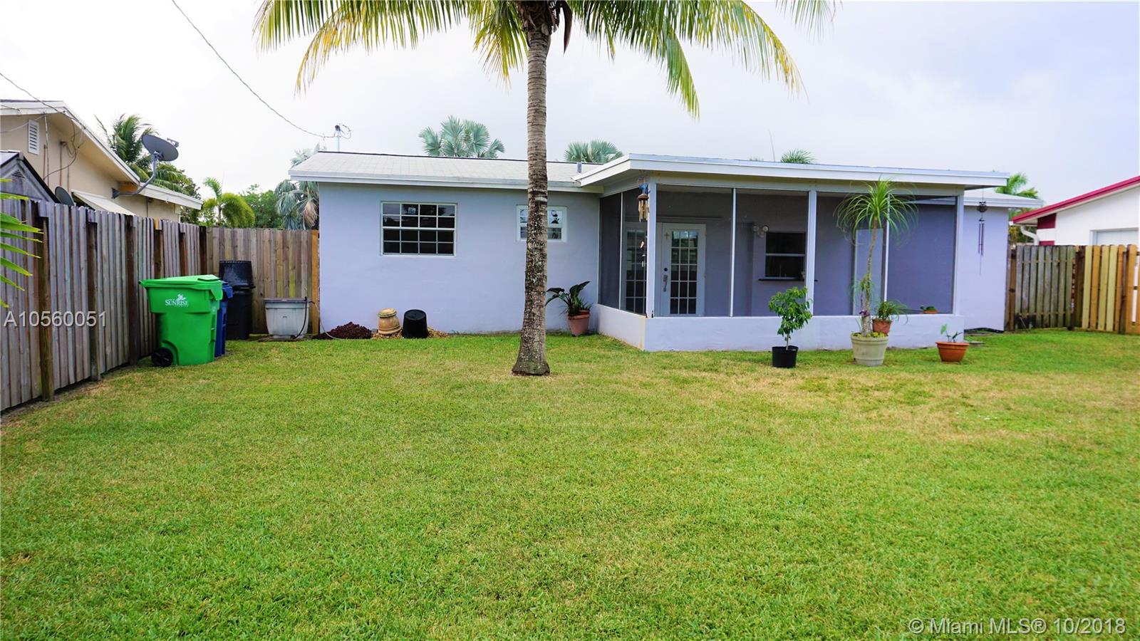 Great opportunity for first time home buyer(s) or small family in quiet neighborhood, one single story in West Sunrise. Easy access to major roads I595, I95 & I75. Close to Westfield Broward Mall and Sawgrass Mills Mall. Walking distance from Horizon Elementary and Bair Middle School. Between Sunrise Blvd & Pine Island, just West to University Dr. Kitchen updated with granite counter, SS appliances & gas range. Bathroom updated. Open space. Gas Water Heater. Title in the entire house. Laundry in the garage. New Ranger, Washer & Dryer (2015). Huge fenced yard and screened patio, that's perfect for gatherings. Partial impact glass. Re-roof shingles (2015). No HOA fee, NO Home Owner association. Don't miss out this gem.