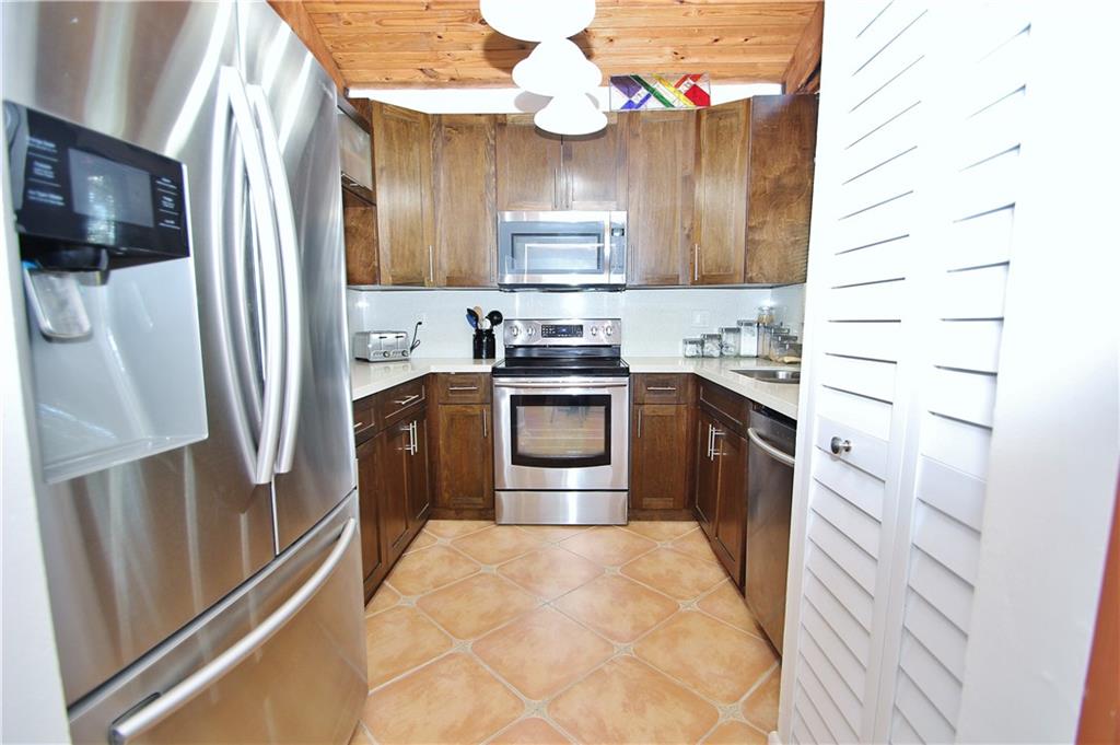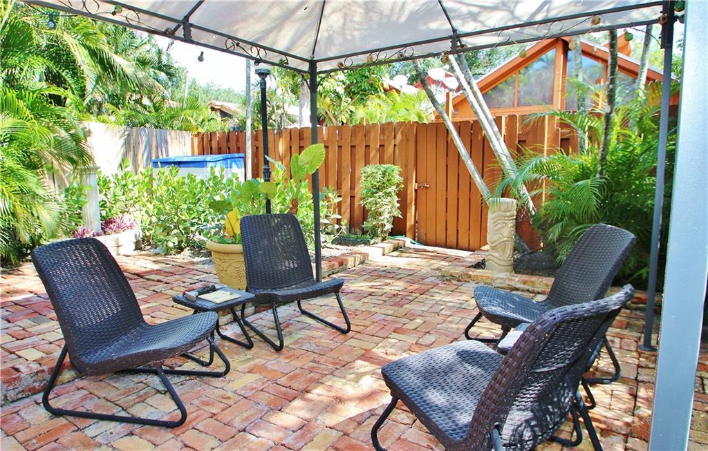 A Great opportunity to own a Beautifully Updated Home in The Lofts. Upon stepping into this unique property you are immediately taken over by the wide open Floor Plan and Natural Bright Light flowing through the huge 2 story wall of Glass & French Doors. Overhead the high Vaulted Wood Ceilings create a very warm and Inviting feeling. Open Living / Dining / Kitchen concept are a perfect setting for entertaining Friends & Family. Over sized Living Room overlooks a Tranquil & Serene, Chicago Bricked, Private, Fenced Courtyard. Additional Property features include Brand New Kitchen, Stainless Steel Appliances & Quartz Counters/All New Impact Windows & Doors/Tile floors through-out/Updated Bathrooms/Fixtures/Lighting... Charming front Porch overlooks the Oak Tree Lined Cul-De-Sac street.