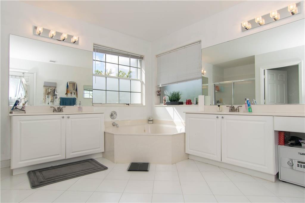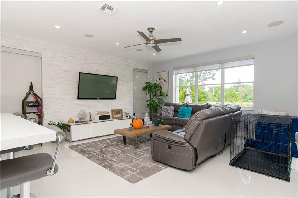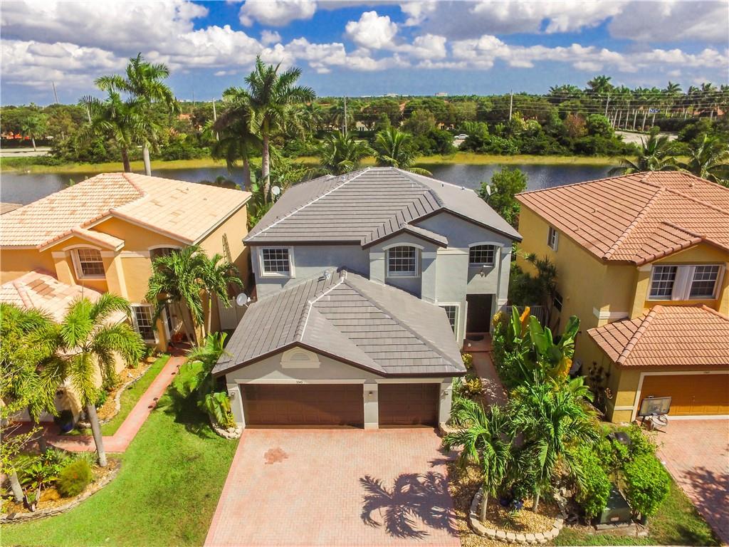 Excellent Opportunity. Priced to sell 5 Bdr 3 FBth Single Family Home with Pool and Waterfront view. High Quality Features and Modern Upgrades. Kitchen white large soft-closing cabinets, Quarz waterfall-countertop, SS Appliances and wine cooler. Porcelain Flooring first floor, and new water proof laminated flooring upstairs. New Roof 2018. Impact French doors and new accordion shutters. New AC units. Salinated pool with pebble tech finish and new pump and filter. Travertine flooring in the pool area/ backyard. Entire house wired with speakers for a sound system (Receiver not included). Whole house with Led Lights and dimmer switches. New garage motor openers. Stylish Stonewall in the Family Room. New paint interior and exterior. HOA includes Cable & Internet.