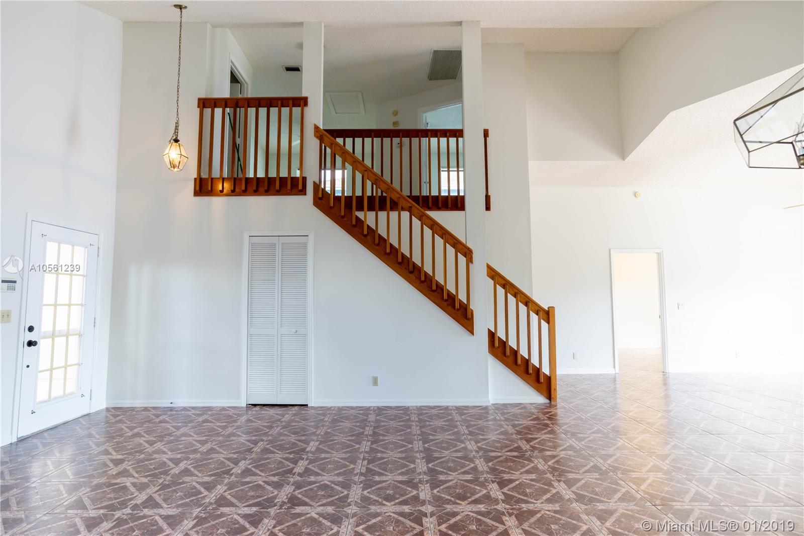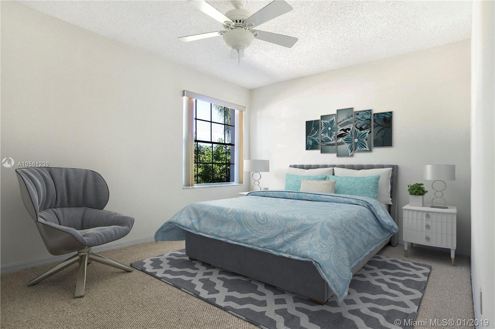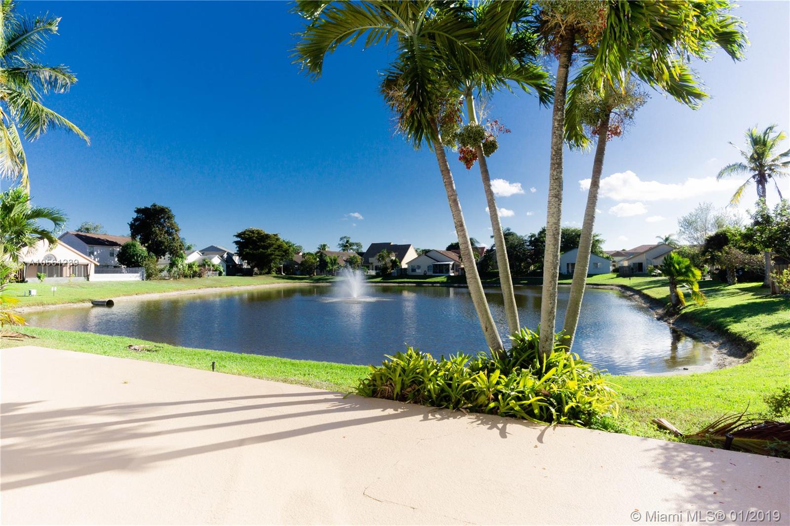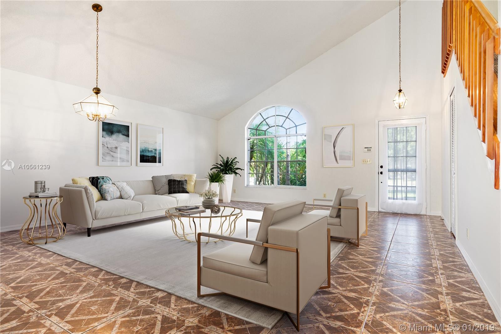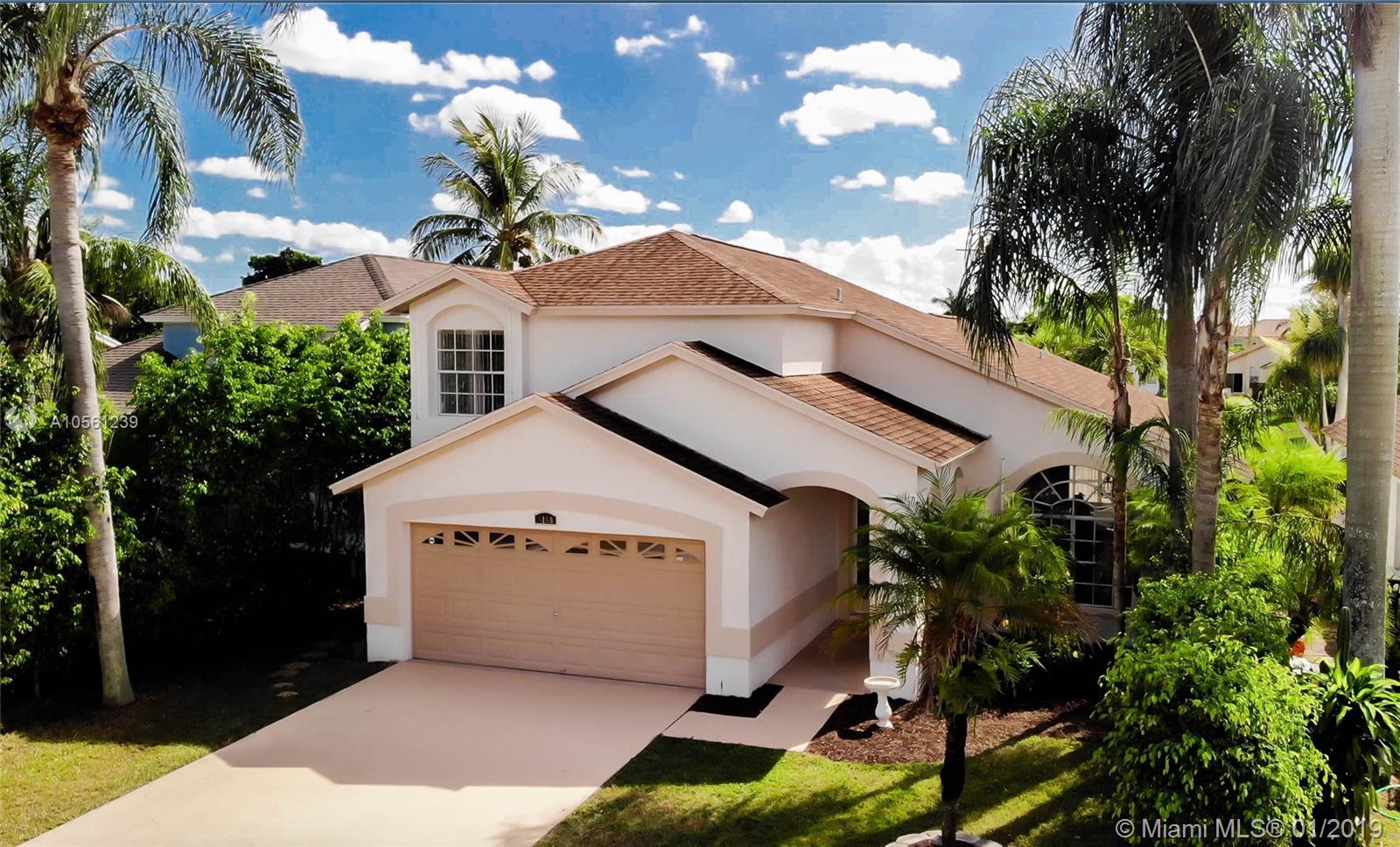 Very spacious waterfront two story home with desirable lake and fountain view. Home offers lot of natural light, high vaulted ceilings, master bedroom and bathroom downstairs, open kitchen and family room overlooking lake, sliding glass doors that opens to private oasis patio great for entertaining or relaxation. Upstairs are two well sized rooms, oversized loft that can be used as 4th bedroom. Home has been freshly professionally painted inside and outside, refinished and sealed tile floors, new electric garage door opener, new AC unit outside, updated AC unit inside 2018. Gated community has community pool, dedicated kids & picnic areas. Convenient access to I-95 and Turnpike, 5 min from new Astro baseball park, few minutes from downtown and beaches. Bank appraised home value is $300,000