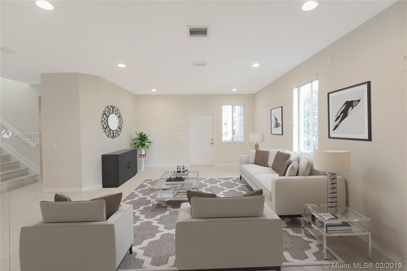 Excellent 2 story in Savanna-Weston 4 BRs in 2nd floor, 3.5 Baths, 2 car garage. Cozy floor plan. Brand new S/S appliances. Tile 1st floor, wood laminate 2nd floor. Custom silhouette shades 1st floor and master. Bath upgraded in suite BR. French door w/rolling screen takes you to covered patio an 18 y/o royal palm. Paved driveway. New 5 Tons A/C unit. A resort style clubhouse with all amenities: 4 pools, basketball court, hockey ring, soccer field, kids’ playground, mini golf, party room. Management on site. 24 hours gatehouse with gate guard. Enjoy the privilege of having all rated A+ schools. Close to parks, restaurants, shops, main roadways, Weston Town Center, Cleveland Clinic and Sawgrass Mills Mall. A must see! Some pics are staging by artist. Please feedback. Sellers very motivated!