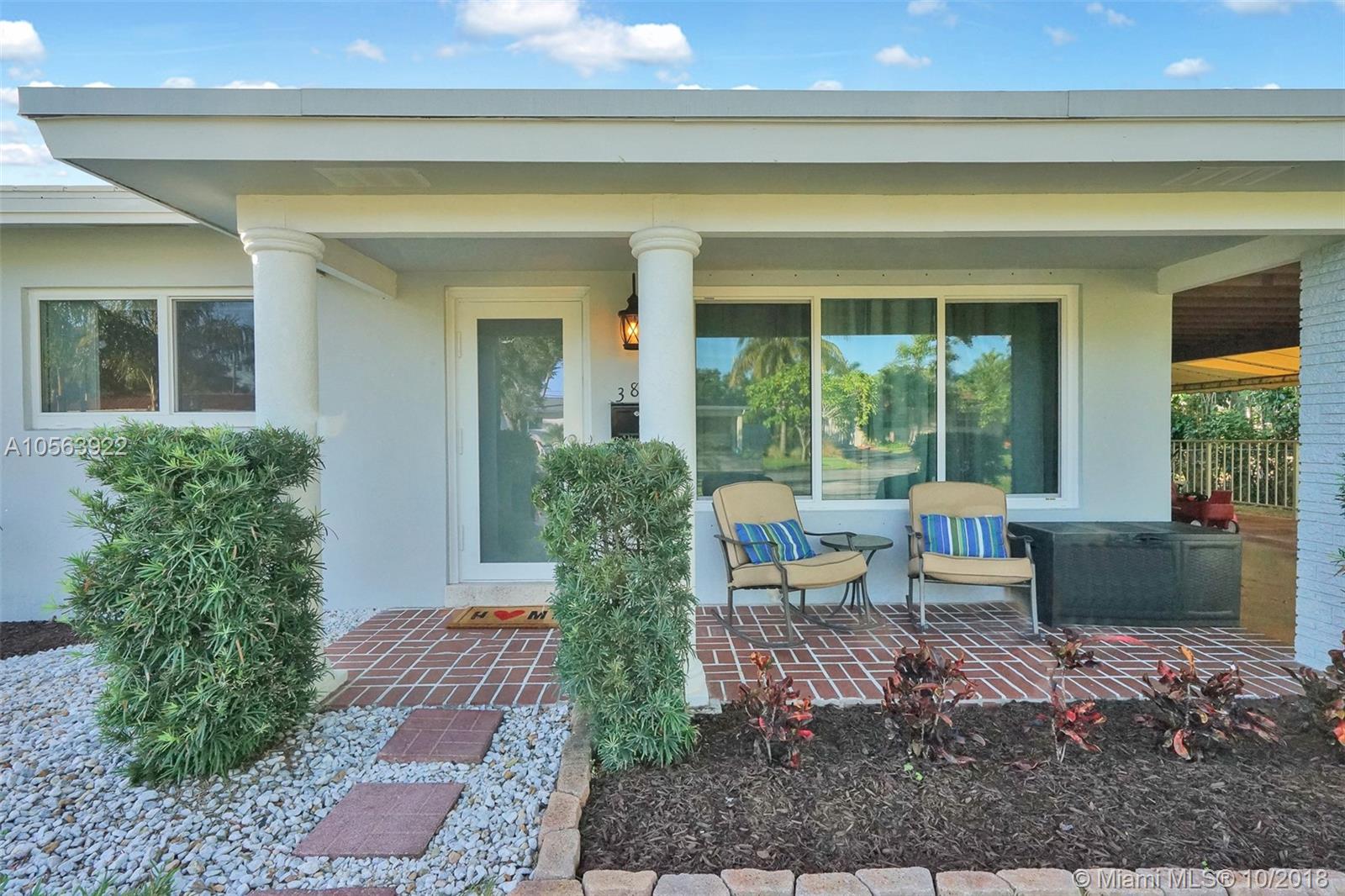 Experience luxury living in this beautifully renovated home in the heart of Pompano Beach! The bright living spaces are lined with impact windows, wood like tile floors & new light fixtures. The remodeled kitchen has crisp cabinetry, stainless steel appliances, double wall oven, granite counters and high hat lighting. The home also has a new roof, new duct work, new hot water heater, covered patio, car port & circular driveway for plenty of parking. There is a completely separate in-law suite with entrance on the right side of the house. This home will not last.