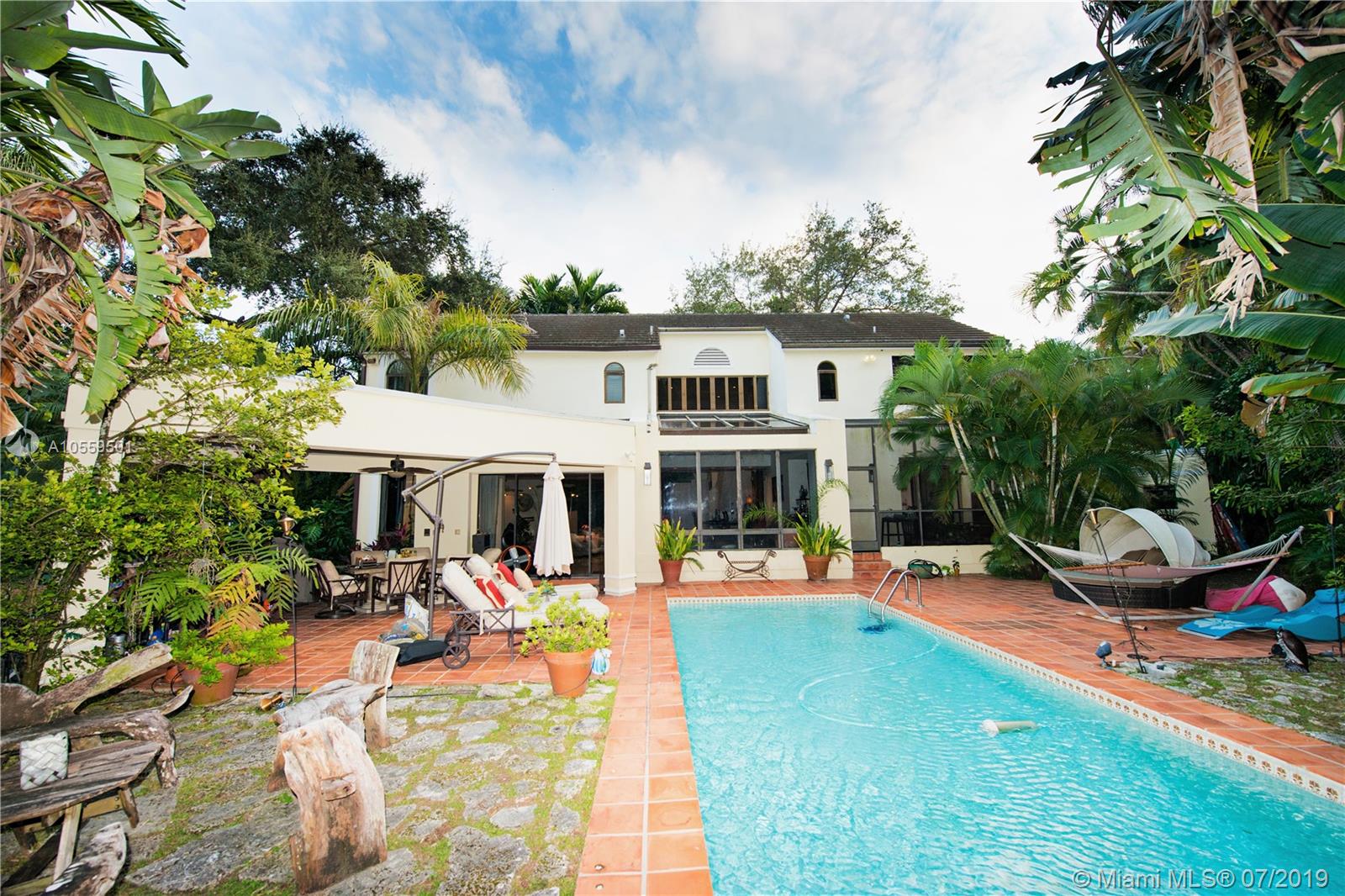 PRICE IMPROVEMENT 4/4.5 pool estate in the heart of Coconut Grove. Lush tropical landscape surrounds this beautiful estate providing peace and serenity. You will feel at home the moment you walk in. Lovely screened in patio and covered area off kitchen and a private patio baloney off of the master. 3/3.5 in the main house all BR has en-suite with separate 1/1 guest house. The very large master with sitting area Jacuzzi bath with beautiful skylights separt shower. The Moorings is a beautiful exclusive 24hr gated Bayfront community with a private marina direct ocean access. Security will only allow owners and approved guest to enter the gates. It is walking distance to downtown Coconut Grove, sidewalk cafes, and some of the best private schools Carrolton and Ransom just a short walk