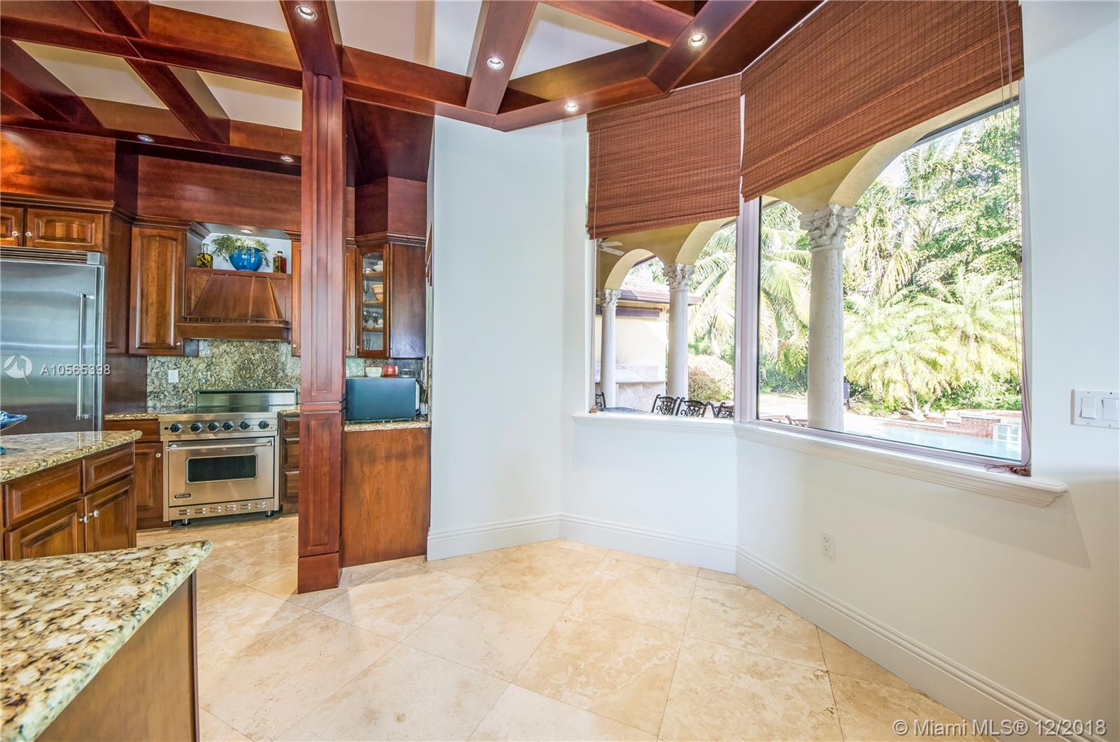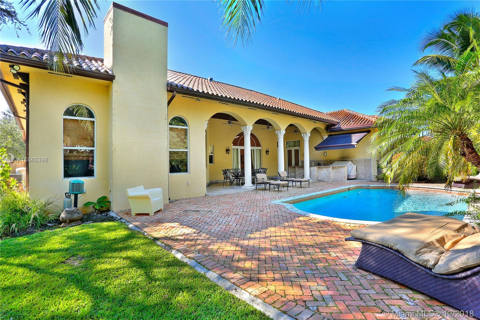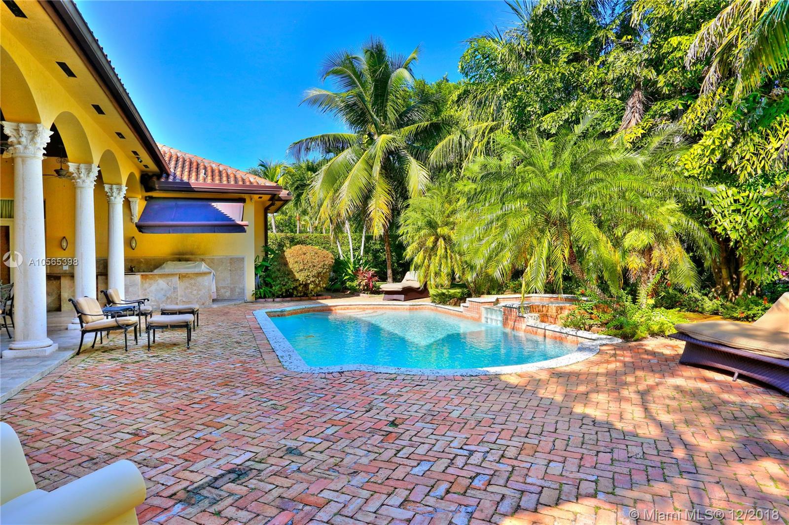 Perfectly Positioned on a Lushly Landscaped Corner lot sits this 2002 Built North Pinecrest Home! Spacious and Elegant floorplan, large open entertaining areas with high ceilings, formal living, and dining rooms, Kitchen cabinetry and millwork is very custom with great detail and high-end Viking appliances, Open Family room concept, Impact windows, fireplace, sleek marble master bath, marble and Brazilian Cherrywood floors, updated baths. House opens to a large covered terrace with outdoor bar area with built-in refrigerator, Chicago Brick patio and pool/spa perfect for entertaining.