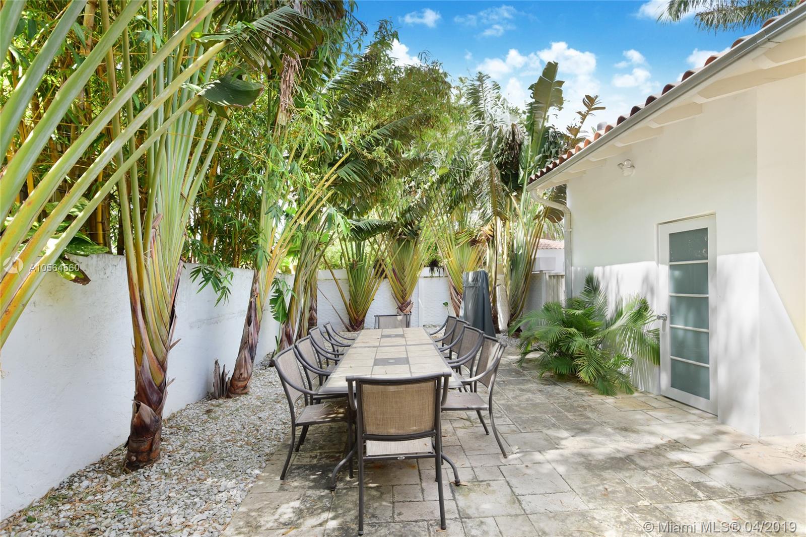 Welcome to this true Historical Miami Beach home by Roy France. Roy France was one of the most prominent Art Deco architects of Miami Beach with well known structures as The National and Versailles Hotel. This corner home has a spectacular private backyard with heated pool and spa. Interior features include high ceilings, wood floors, deco moldings and hurricane proof windows.Covered garage and additional fenced carport for two more cars. Modern kitchen with gas stove and an additional patio, next to kitchen for al fresco dining.This well proportioned 3 bedroom/3 bathroom also has architectural plans and city approval for a two story addition if needed. The pool and the backyard are what a true Miami living is all about. Corner, gated and a luscious landscaped property. Its A MUST SEE !