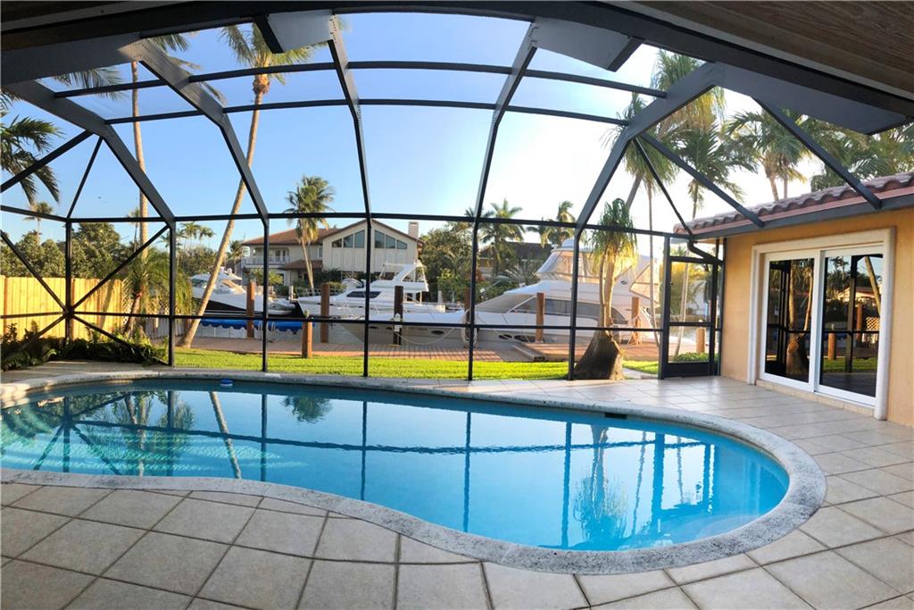 Classic Bright, Clean Florida-Ranch style family home deep within Rio Vista's wonderful 10th street isle, offering 75' of waterfront with Southern exposure, with a pool and deep garage. Located close to the main channel, minutes from ocean access. Meticulously cared for with great pride of ownership, detailed millwork within Florida Room, updated kitchen, bathrooms, and exterior utility storage. A wonderful opportunity!