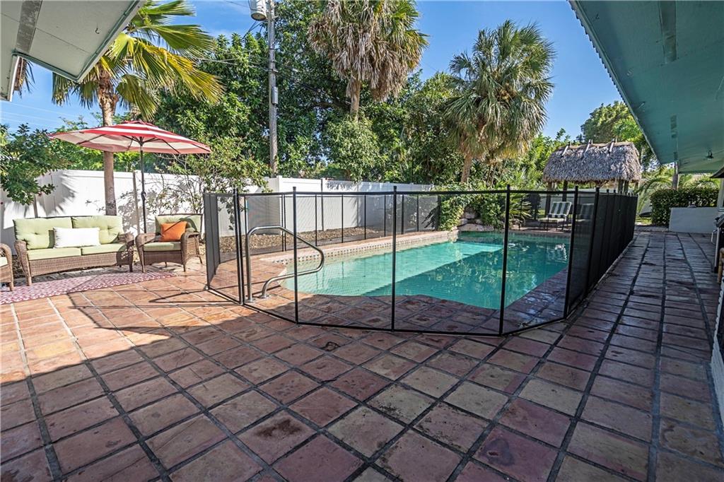 Charming shabby chic home on a huge lot East of US1 in redeveloping Pompano Beach! 3 beds + den/office with 2 full baths and a half bath used as the cabana. Chicago brick driveway, new kitchen with natural gas chef's stove, granite counters, and stainless appliances. Two large living areas, remodeled baths and split bedroom floor plan. Huge yard with tiki hut on one side and kids play area on durable professionally installed artificial turf on the other with pool in between. The owner says sell which is reflected in the list price.