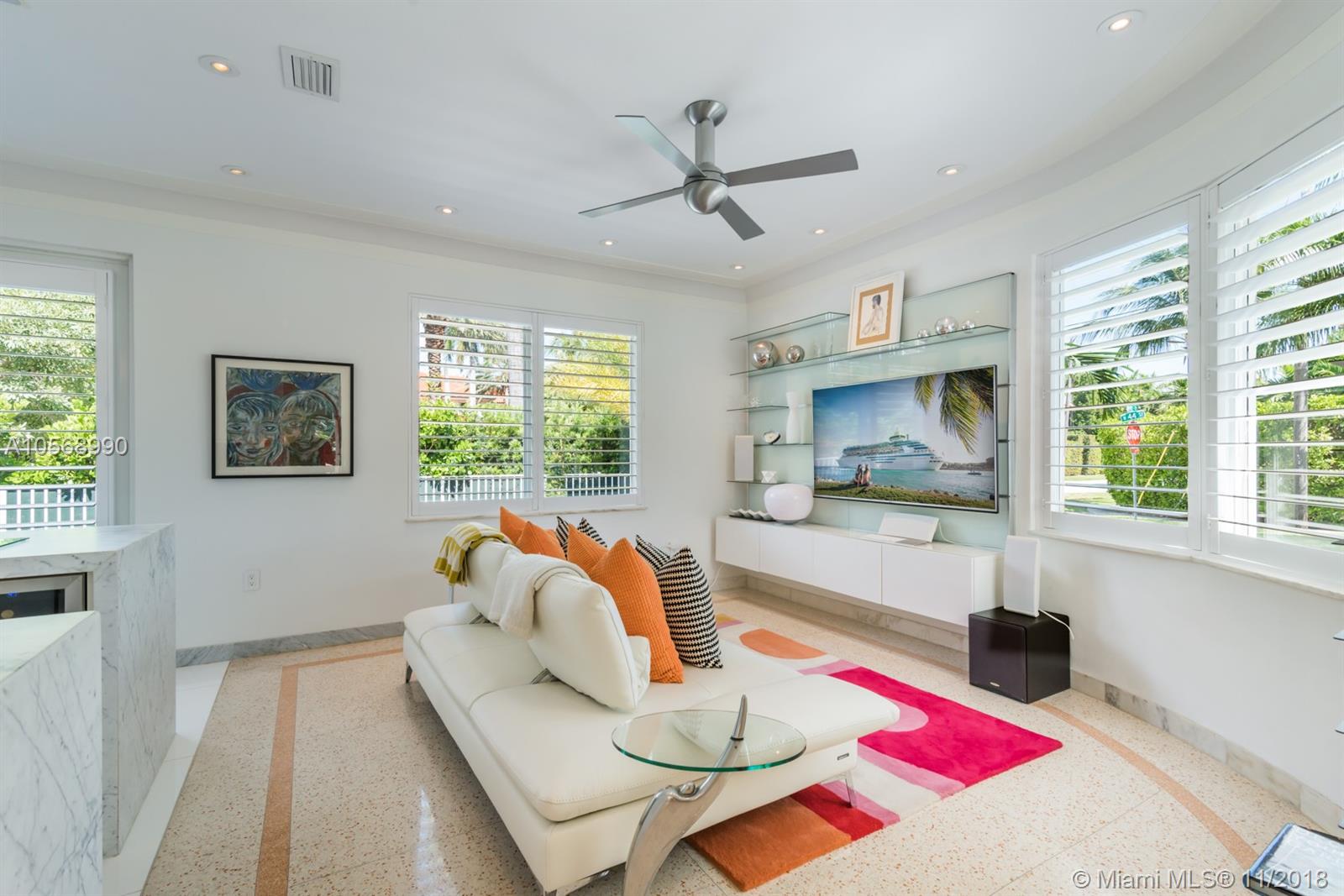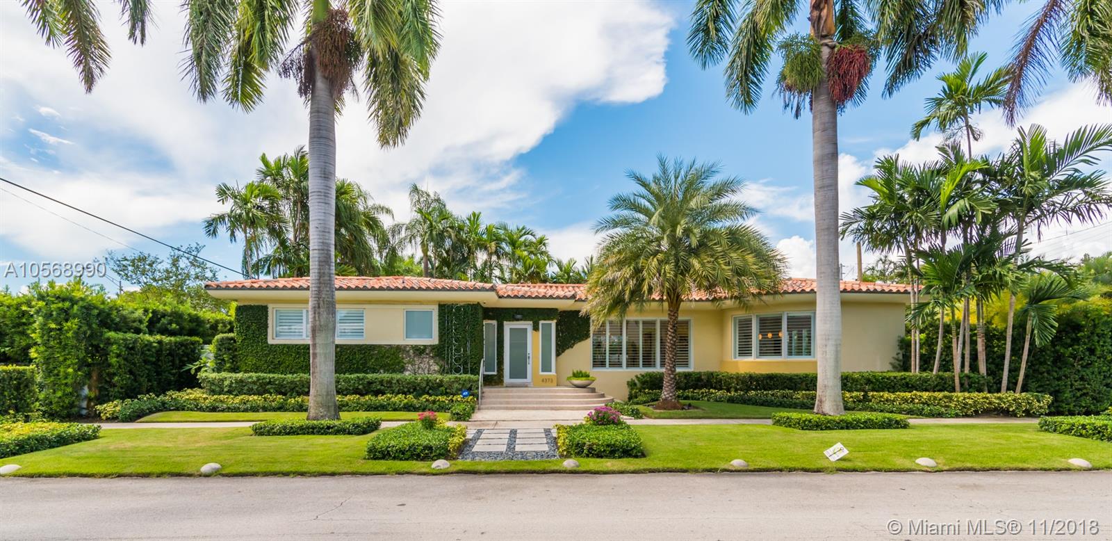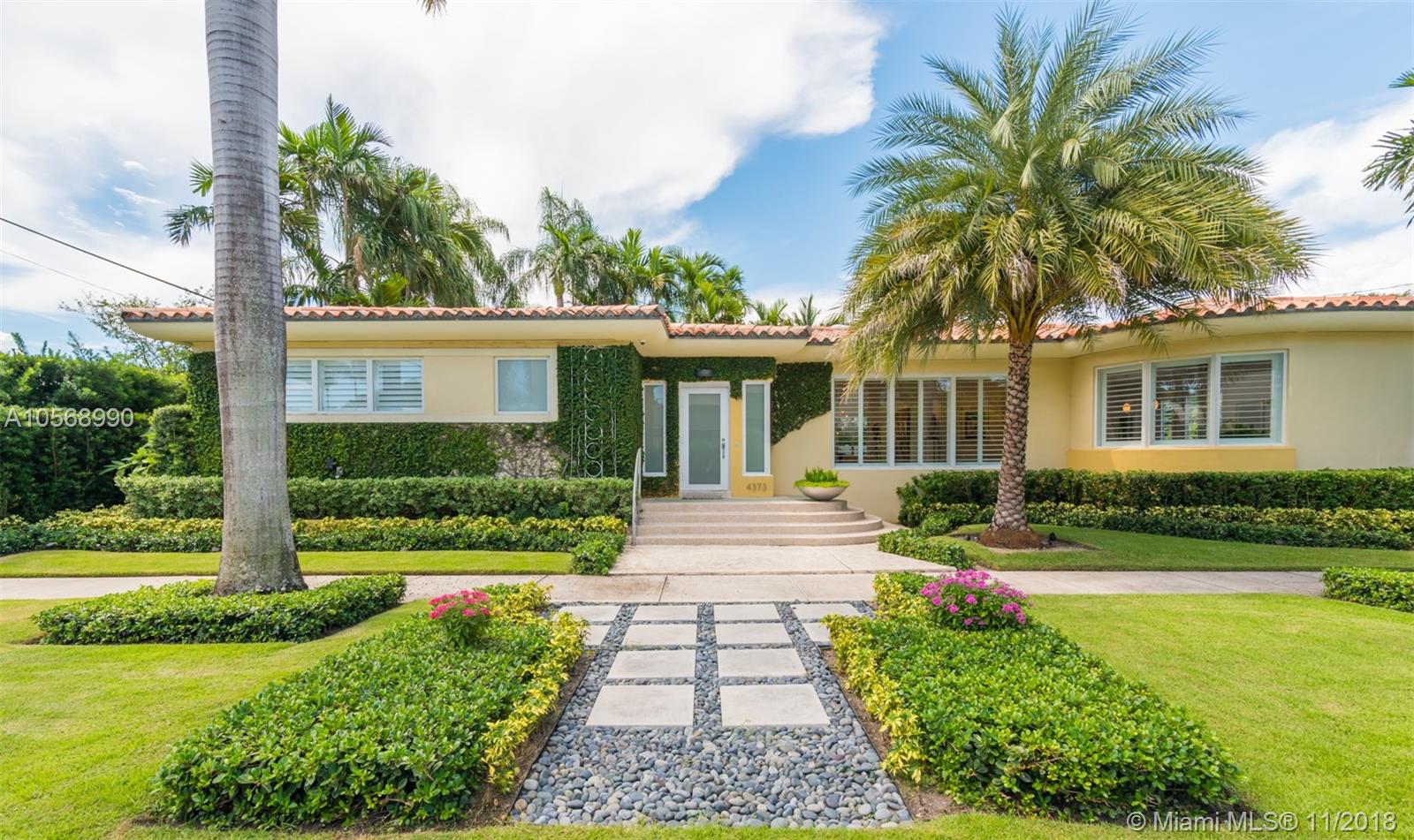 Introducing 4373 N. Bay Road. Mid-Century/ Mediterranean luxury living on North Bay Road. Designed by renowned Miami Beach architect Gilbert M. Fein, this corner lot villa-style home is stunning in every detail with magnificent architectural features and superb curb appeal. The expansive living room features restored original terrazzo flooring, formal dining room, stone mantle fireplace, media room adjacent to the chef’s kitchen with custom cabinetry & Carrera marble counters. Master bedroom with spa-inspired bath. Details include impact glass, high ceilings, crown molding and a fabulous layout for entertaining. All living areas overlook patio garden-terraces that frame this beautiful home. Historic Luxury 21st Century living on North Bay Road.