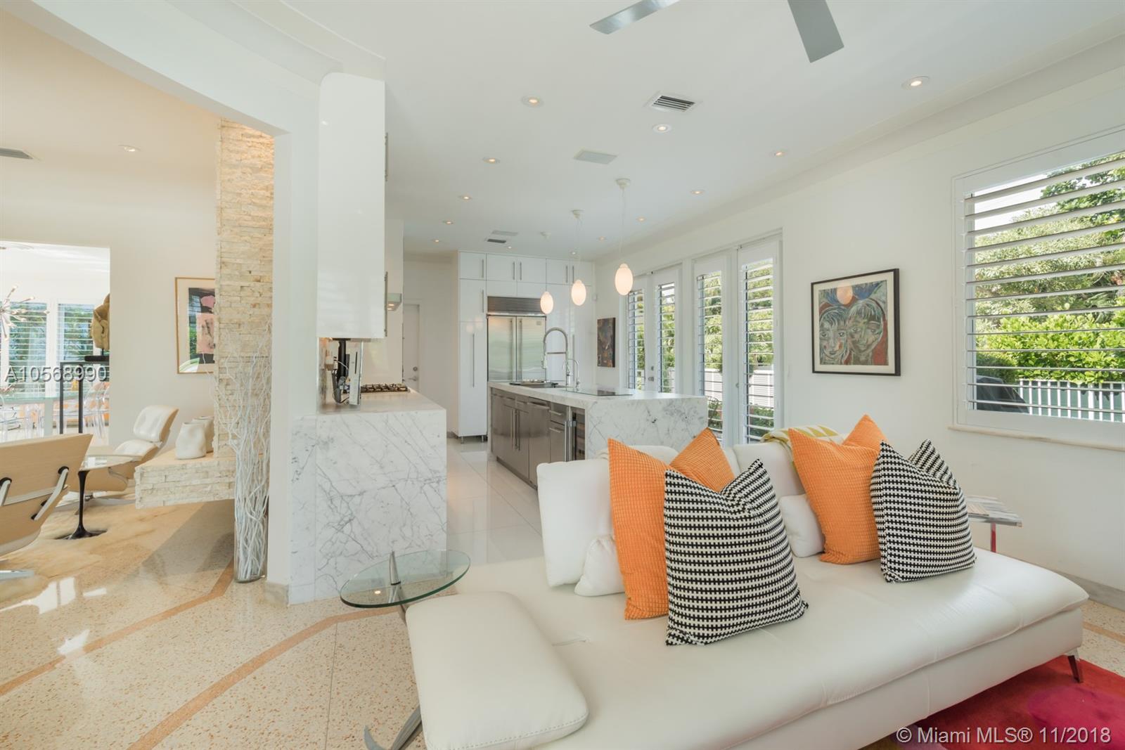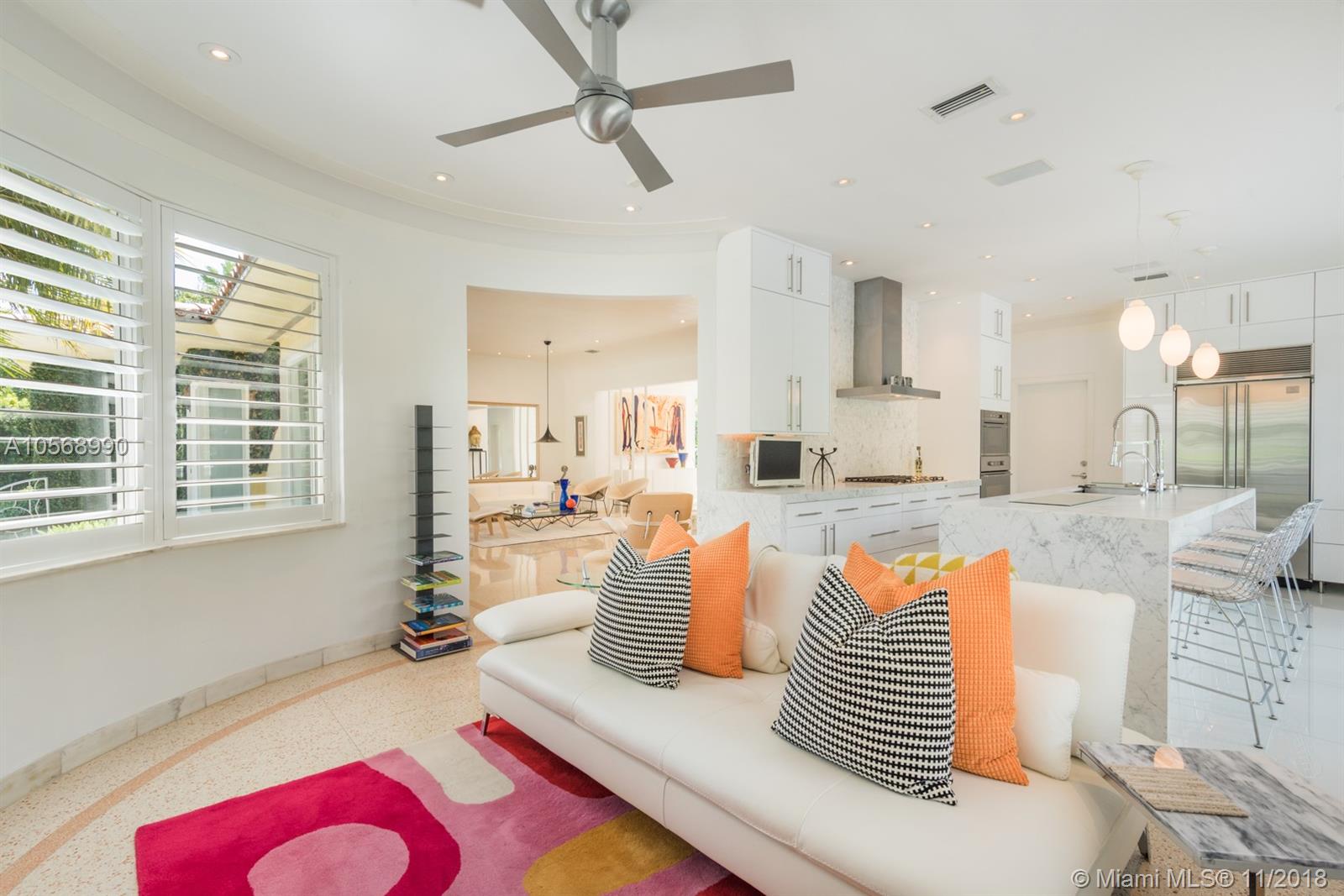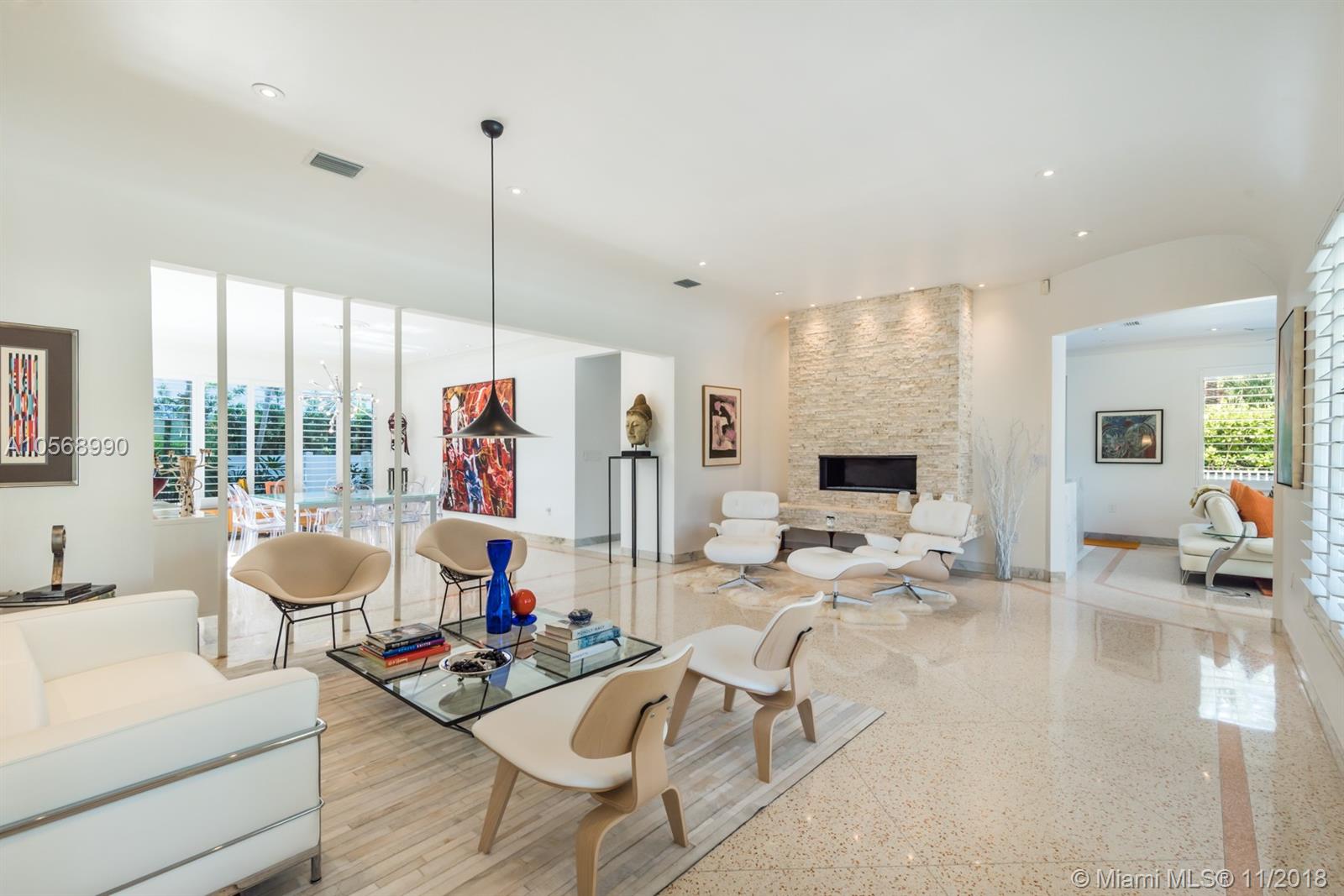 Introducing 4373 N. Bay Road. Mid-Century/ Mediterranean luxury living on North Bay Road. Designed by renowned Miami Beach architect Gilbert M. Fein, this corner lot villa-style home is stunning in every detail with magnificent architectural features and superb curb appeal. The expansive living room features restored original terrazzo flooring, formal dining room, stone mantle fireplace, media room adjacent to the chef’s kitchen with custom cabinetry & Carrera marble counters. Master bedroom with spa-inspired bath. Details include impact glass, high ceilings, crown molding and a fabulous layout for entertaining. All living areas overlook patio garden-terraces that frame this beautiful home. Historic Luxury 21st Century living on North Bay Road.