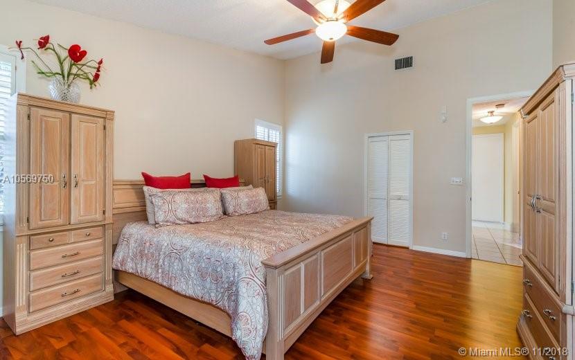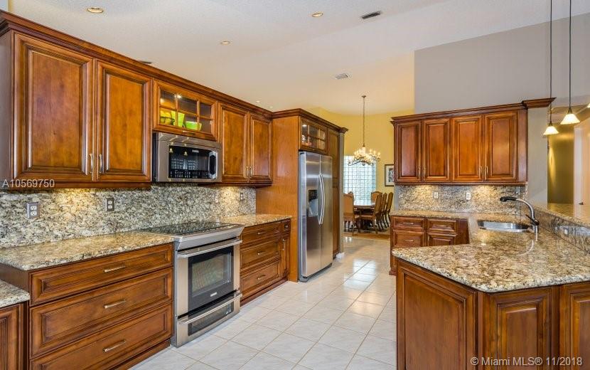 This impeccably maintained single story pool home with an open floor plan is one of only 39 homes located in the gated and guarded community of Sunset Isles within Silver Lakes , Pembroke Pines . Solid mahogany 8 foot entrance doors open to 4 bedrooms and 2.5 bathrooms with volume ceilings to 16 feet, an updated kitchen which includes granite counters, solid wood cabinetry, and high end stainless steel appliances including a wine cooler. The master bedroom has a huge walk-in closet with a custom built closet system. The master bath has been remodeled to include Italian marble flooring, solid wood and granite vanities and a walk-in shower with frame-less glass. The home has a Class-A wind rating with hurricane impact protection on all openings, a newer metal roof.