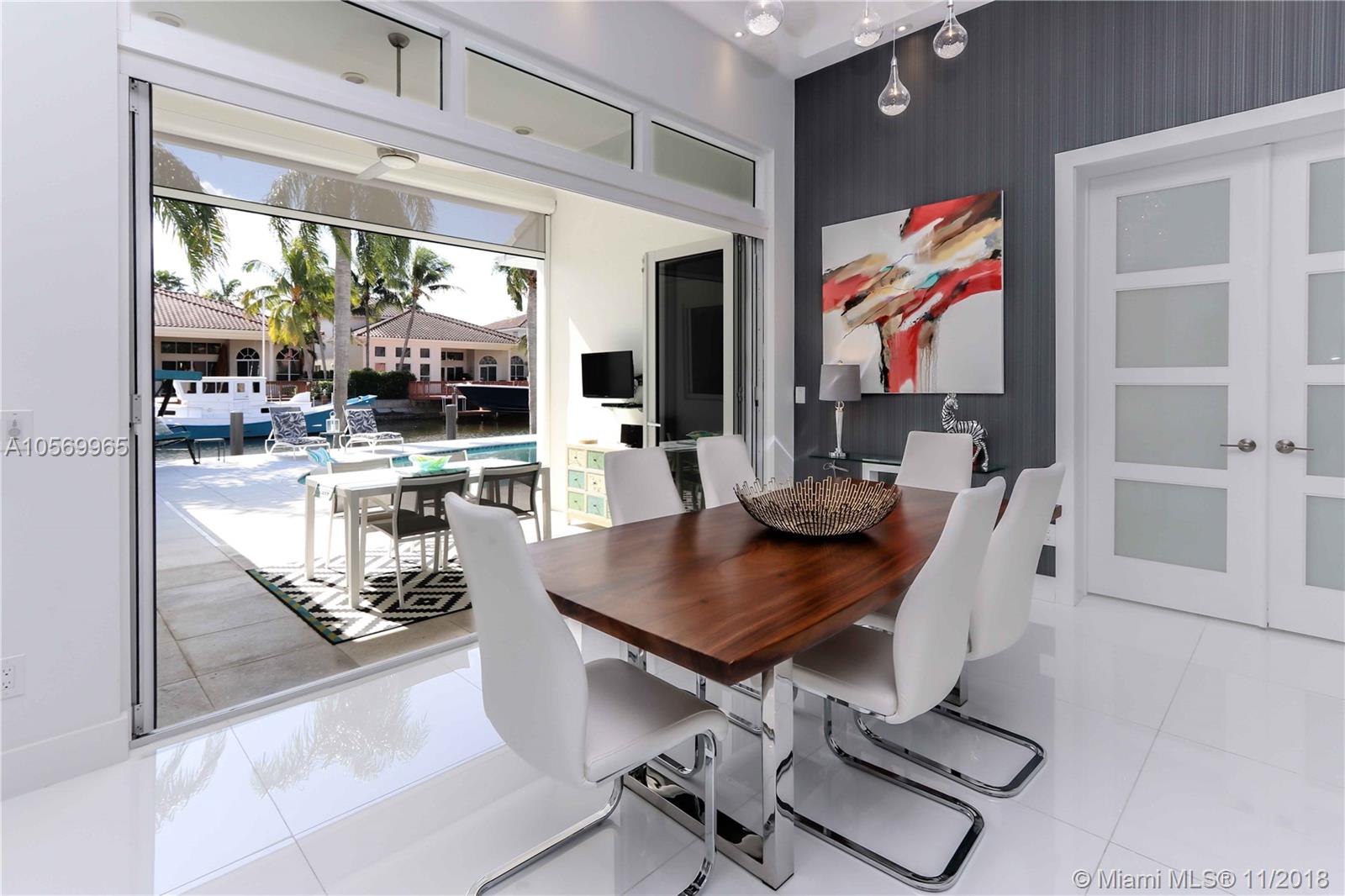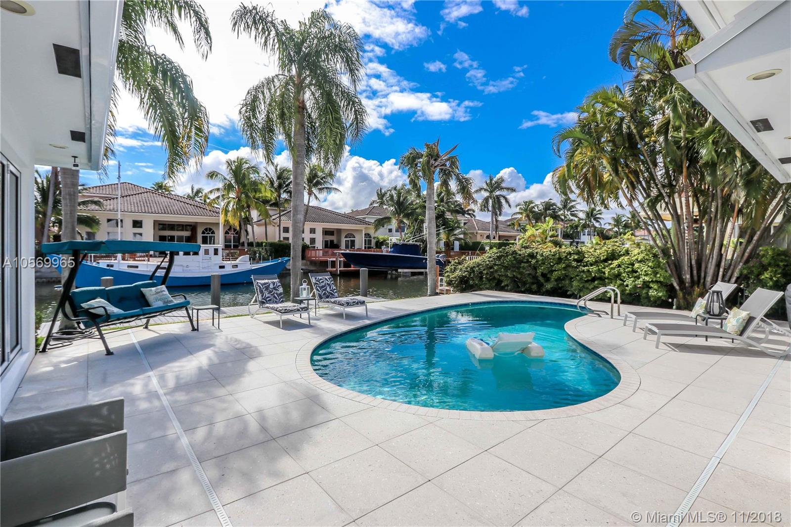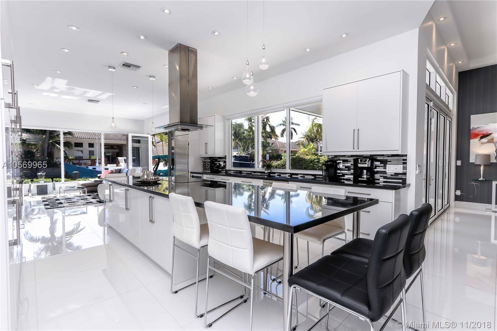 Custom Built Waterfront Home (Complete Remodel 2014) Open Contemporary Concept 3 Bedroom/2.5 Baths, plus Den/Library/Office Space, Living Room, Formal Dining Room, Family Room, with 2 Car Garage, a Beautiful Pool and 60' Dock (renovated 2016)~Direct Ocean Access/No Fixed Bridges~Large Kitchen w/ 15' Island, Granite Countertops~Jenn Air Appliances Include: 30" Induction Cooktop BK, 30" Comb Micro/Wall Oven w/ Convection, Island Hood All SS~Marvel Beverage Center~Impact Doors/Windows~2 A/C's~White 32"x32" Porcelain Glass Flooring Throughout~12' and 10' Ceilings~Pool (Renovated 2015) New Interior Pool Surface and Tile, New Pump and Filter, Salt Water System, Heater, Multi Color Light Inside House~Dock w/ Trex Composite and Power Pedestal Dock