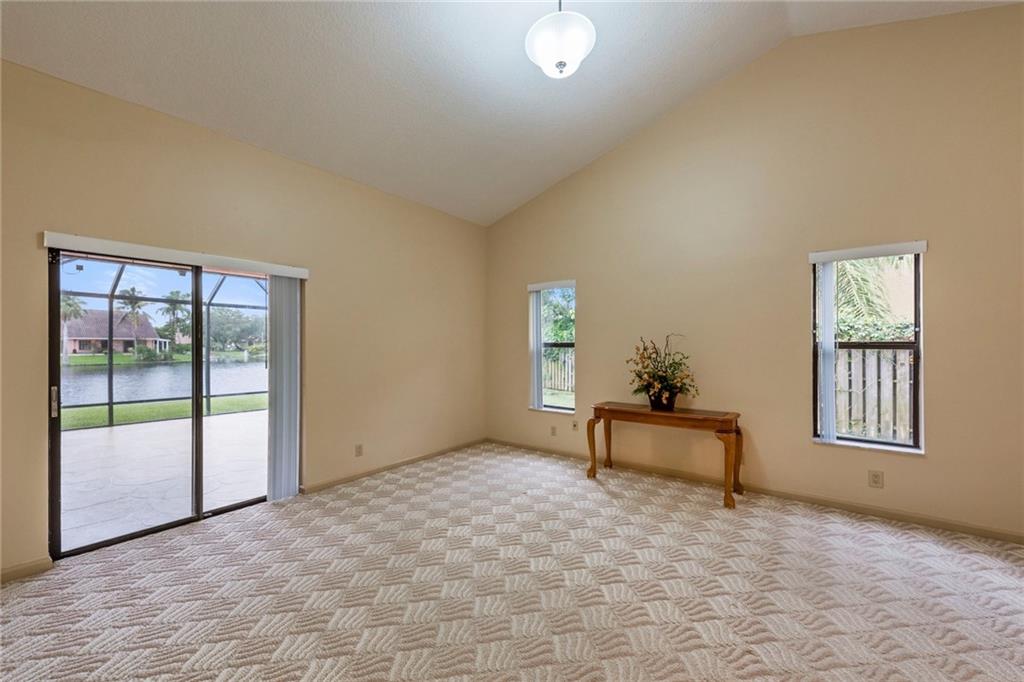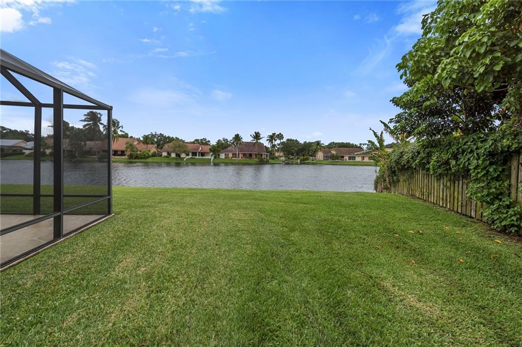 True pride of ownership describes this immaculate lake front home in desirable Fox Run at Jacaranda. Magnificent lake views. Oversized pie shaped lot on quiet street. Newly refinished Riverstone stamped concrete front walkway as well as back domed screened patio. Driveway recently redone and permitted. Upgraded appliances, tile throughout living areas, knockdown textured ceilings. Vaulted ceilings in living areas and master suite make this home light and bright. French doors in family room, breakfast room and 4th bedroom. Roof - November 2010, accordion hurricane shutters, 50 amp electrical receptacle on patio for portable generator or spa. Exterior lighting with motion detectors, Alarm System. LOW HOA FEES, Minutes to Highways, Shopping Malls, Fine dining and Parks