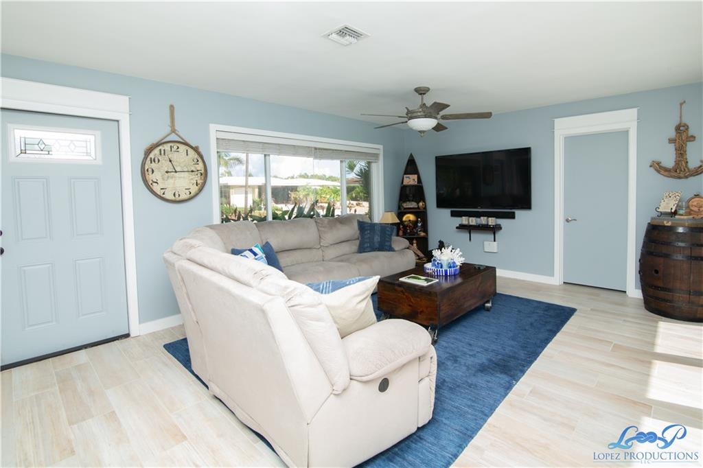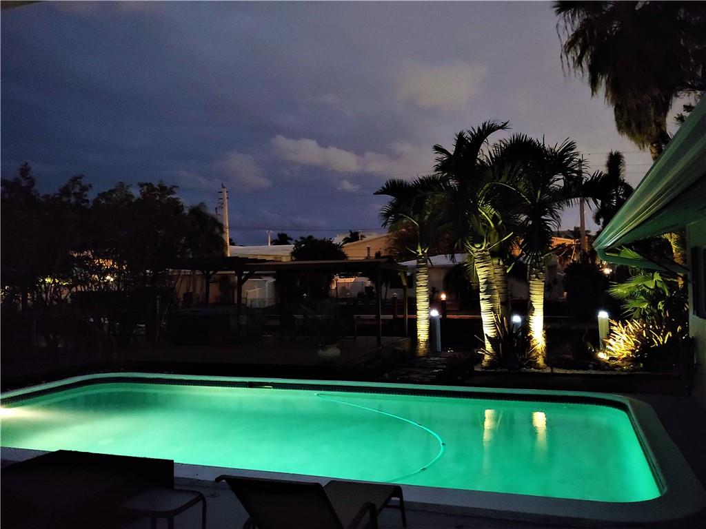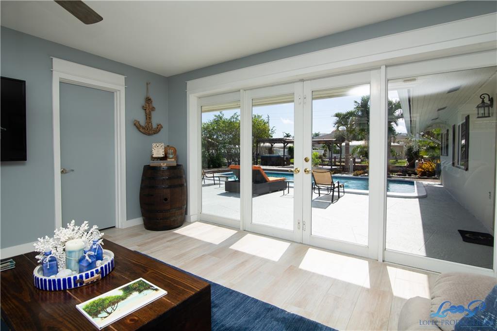 This move-in ready home is a beautifully renovated waterfront property with ocean access east of 95! Many features of this home have been updated, including kitchen, flooring, bathrooms, newer appliances, and partial impact windows (full panel covering for other windows). The backyard is an incredible space for entertaining, with a pool, hot tub by the water, coi ponds, and multiple sitting/lounge areas. The stove and water heater are gas, back yard is fenced in, extra storage area outside, dead-end street, built-in office, and a circular driveway with great parking space. This home is currently configured as a 3 bedroom with a den, but can be used as a 4 bedroom