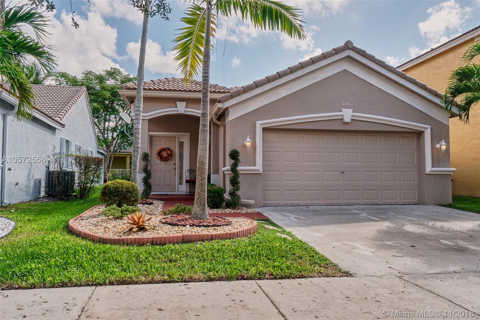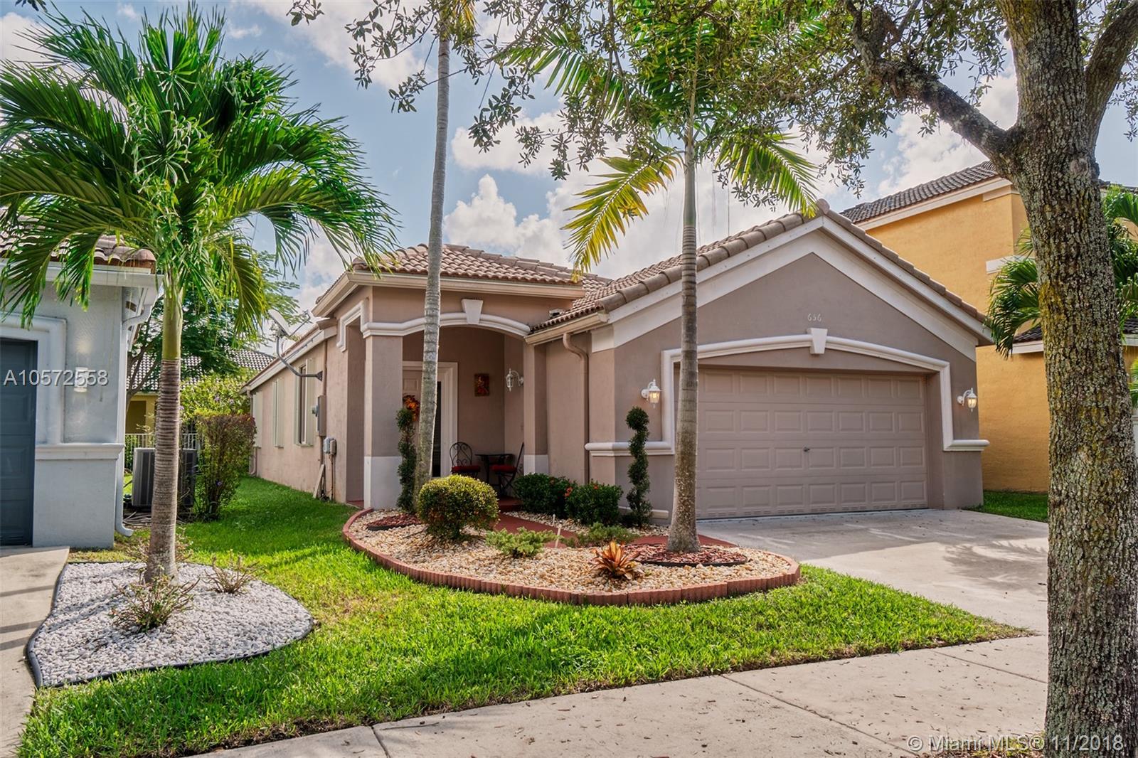 Beautiful and spacious house in the prestigious gated community of Savanna in Weston. This fantastic layout with 3 bedrooms and 2 upgraded baths has an ample kitchen with granite counter tops and SS appliances. Enjoy a morning breakfast in the extended counter area with the natural light this house offers. Nice tile floors, knockdown ceilings and brand new accordion shutters makes this house a move-in ready home. It also has 2 car garages and access to the Best A+ schools in South Florida. Make the move and Call now to schedule a showing, this is the best Price home in Savanna!!