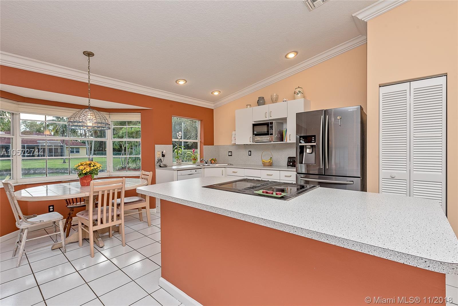Rare Find!One story pool home in the heart of Cooper City.This 4 Bedrooms 2.5 Bathroom home Located in the small community of Stirling Village on a quiet no-through street. Beautiful corner lot with lovely pool/patio and spacious yard on a peaceful lake. New ceramic wood-like tile in main living areas and master suite, updated master bath with wood cabinets, granite counters, separate shower and roman tub. Floor plan features a split bedroom design, formal living-dining area, kitchen opens to family room, Large kitchen for easy entertaining. You will love the new Samsung 4 drawer black stainless steel refrigerator! Newer top of the line window treatments. All closets have built ins for great storage. Interior laundry room with sink. Pool diamond bright a year ago. A rated schools.