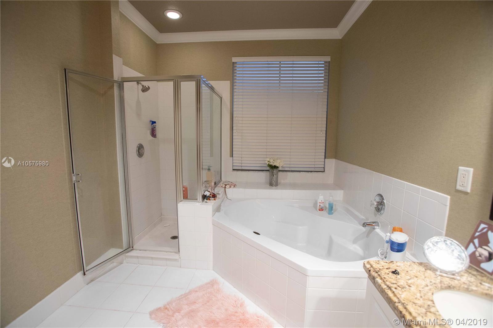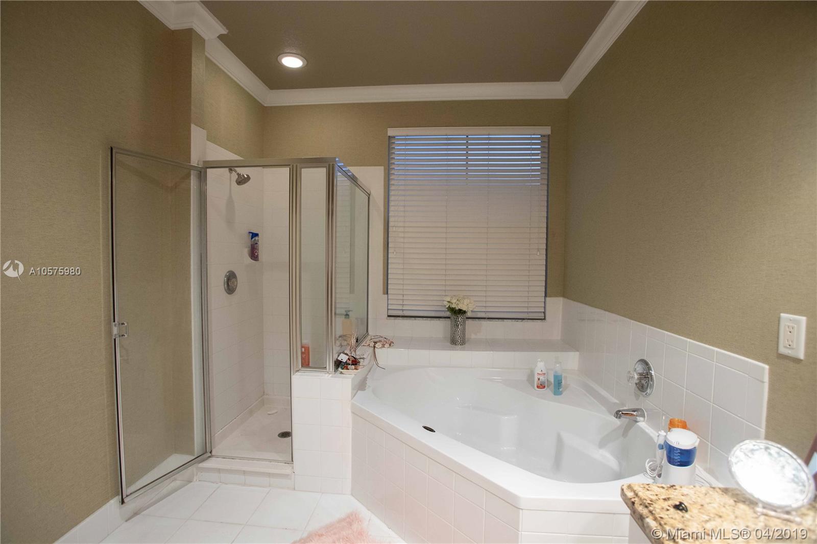 Beautiful home with 3 bedrooms and 2½ bathrooms with a loft. Located in a private circle of only 15 homes. Freshly painted, updated bathrooms with granite counters, porcelain sinks and custom mirrors, plantation shutters, crown molding, custom drapes, brick style pattern tile floors, recessed lighting throughout, new water heater, air conditioner, lush landscaping for a private back yard. Close to shopping, I-95, I-595, Turnpike, places of worship.