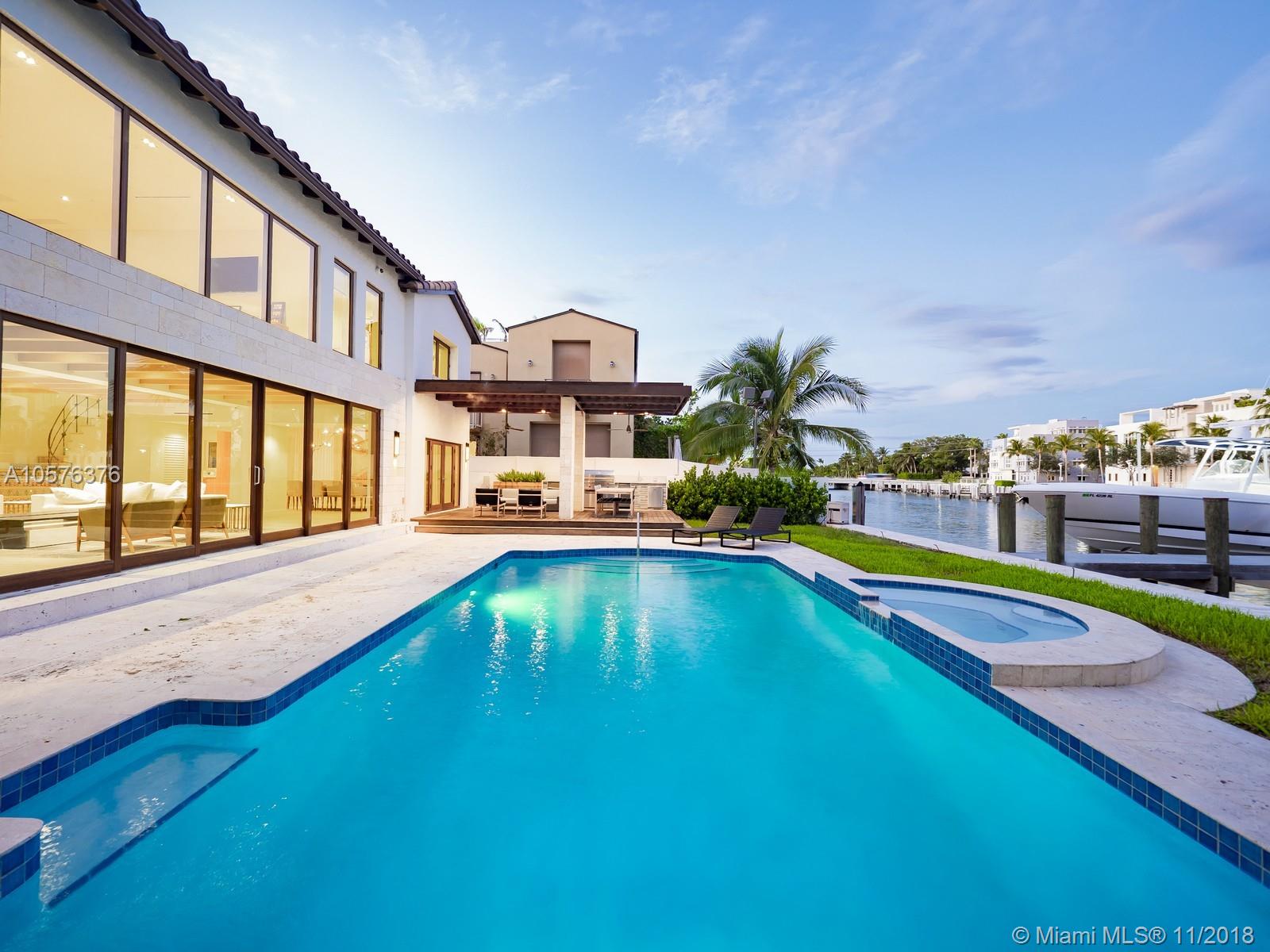 Waterfront masterpiece on prestigious Pine Tree Drive was rebuilt featuring only the finest designer finishes such as Miton Cucine cabinetry, new Subzero and Wolf appliances, and cascading sliding doors that promote an indoor, outdoor lifestyle on Indian Creek. On the first level enjoy a contemporary entertaining area with direct pool and water views. Upstairs offers four bedrooms, laundry room, and a master suite with plenty of closet space and a private terrace. Outdoors features a new pergola with Ipe floors, a summer kitchen, a recently-built seawall, and lifts for a 20,000 pound boat and dual jet skis. Smart home with Crestron automation, lighting, and 11-zone Sonos audio. A unique location offering a short walk to the beach completes the lifestyle offered by this renovated home.