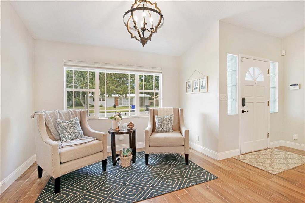 Stunning Lauderdale Isles home with timeless renovations. Beautifully updated 3BR/2BA with 60ft on deepwater/ocean access canal. Spacious floorplan with approx 2300 sq ft, vaulted ceilings, and new porcelain plank floors continuous throughout living areas and bedrooms. Dreamy, white open concept chef's kitchen with cooking island and counter seating, breakfast area, top stainless appliances, quartz counters, farmhouse sink, and recessed lighting. Sliding doors seamlessly blend interior with outdoor living. Generous master bedroom with walk-in closet, dual sinks and frameless shower. Screened east-facing patio for year-round entertaining and west facing patio to catch the sunset. Newly permitted garage door for 1CG with 4 driveway parking.