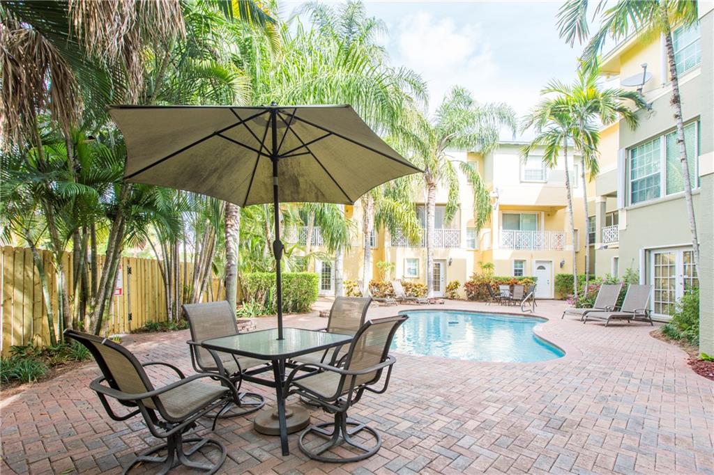 Welcome Home To Waverly Place. This is upscale Urban Living at its finest. This completely remodeled 3 story townhouse is turn key and ready for its new owners. This home boasts real cherry wood floors throughout the living areas, brand new AC (2018), Tankless Water Heater (2018) crown molding, custom mahogany plantation shutters, granite counter tops, stainless steel appliances, custom bathroom vanities, master bath has dual his and her sinks, and private patio area for entertaining outside. This 2 bedroom 2.5 bath and a den is spacious and has a 1 car garage. Beautiful community pool and walking distance to Downtown Las Olas. Easy access to the highway, airport, downtown, and the beach. HOA Includes water, sewer, trash, amenities, pest control, building exterior and roof.