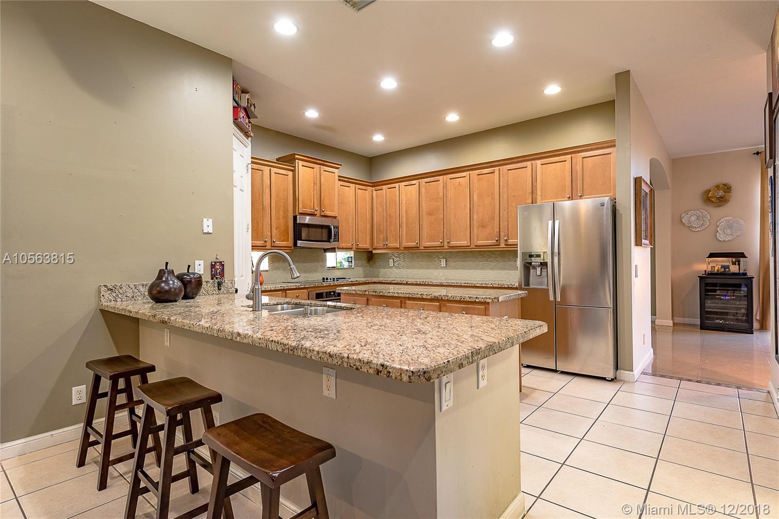 Elegant courtyard style home with 6 bedrooms,a loft,4 bathrooms & 2 car garage.This beautiful courtyard model offers a completely private in-law headquarters w/high ceilings,full bath & private entry,perfect for a nanny,guests,private office,or even a gym.The open kitchen features stainless steel appliances,cook top,wall oven,granite countertops,cooking island & plenty of beautiful extended wood cabinetry. In addition,a very convenient 1 bedroom & full bath located on the 1st floor makes this property not only unique,but the perfect choice for you.The spacious master suite features high tray ceilings,spectacular balcony & dual sinks,shower, roman tub & even a bidet. 2nd level is equipped w/ accordion shutters & a fenced backyard located in the prestigious Biltmore Estates in Monarch Lakes.