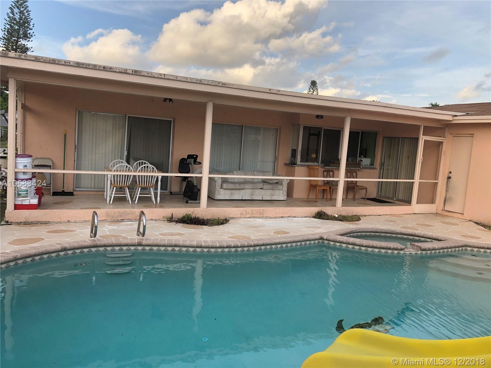 Large home in sunrise 4/2 corner lot with circular drive way .Home has open floor concept with a split plan.Home is in great shape with a large patio and updated pool and deck.